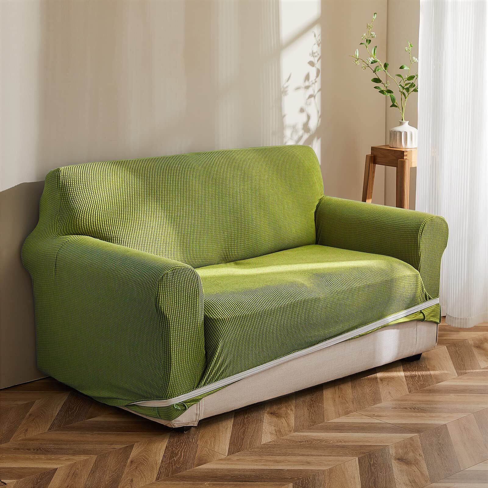 【在庫セール】Topfinel ソファーカバー 3人掛け 肘付き 無地 北欧風 ストレッチ フィットタイプ 伸縮素材伸び良く 滑り止め 柔らかい 犬 猫 傷 防止 超便利 四季適用(グリーン) | gsmshop