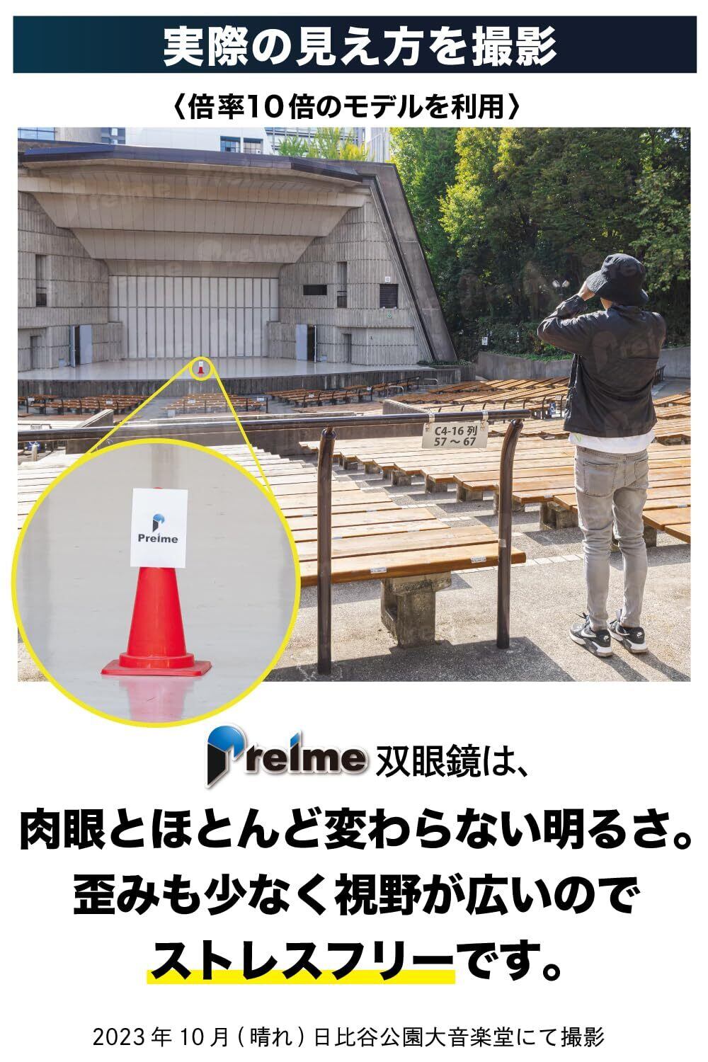 Preime双眼鏡のこだわり:倍率は10倍で、ほとんどの会場、ドームでご満足頂けます。対物レンズ有効径は25㎜、ひとみ径は2.5であり、肉眼でみる状態とほとんど変わらない明るさです。多層膜コーティングを採用しております。重さも長時間利用を考え250g以下で、着脱式のネックストラップを付属させました。️Preime双眼鏡は本気で皆様のコンサートの満足度を上げるために考え抜かれた双眼鏡です。
