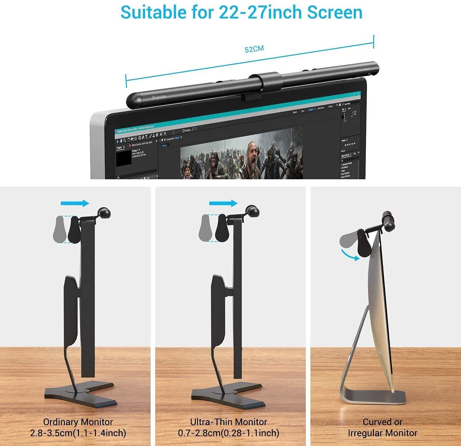 【2022最新】Quntis デスクライト USBライト モニターライト 52cm バーライト 掛け式ライト 自動調光厚さ0.7cm~3.5cmのモニターに対応 Ra>95 目に優しい 無段階色温度と輝度調整 PC作業/読書/譜面台/ネトゲ廃人に対応 BasicPlus | gsmshop