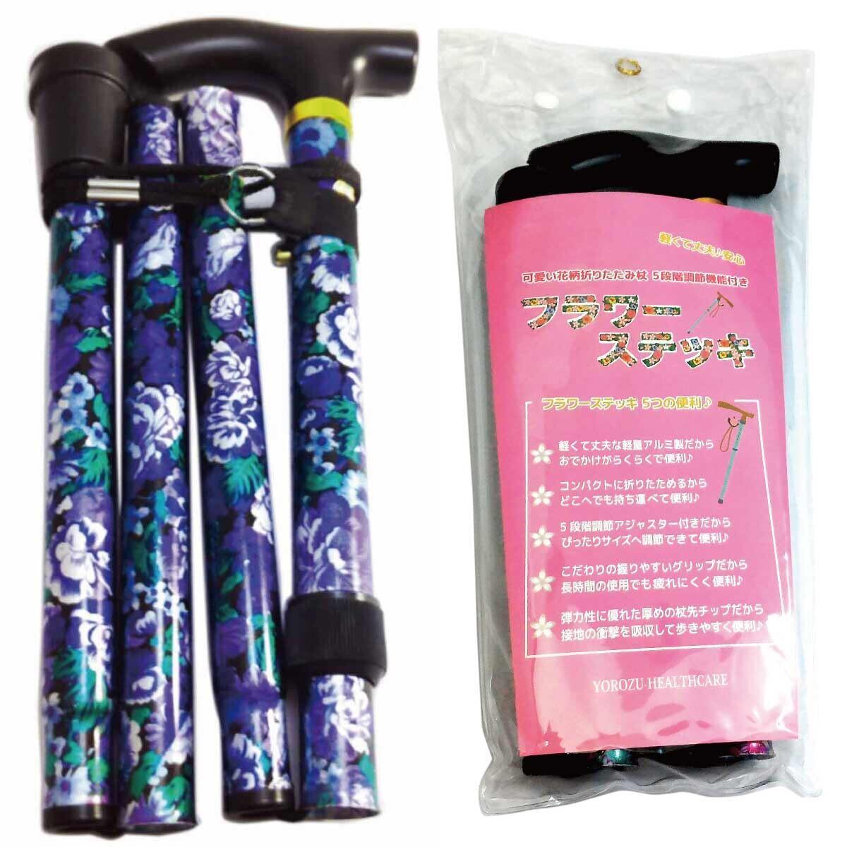 (ヨロズヘルスケア) フラワーステッキ 杖 女性用 短い 折り畳み杖 軽量 折りたたみ杖 杖先ゴム付 身長145-165cm
