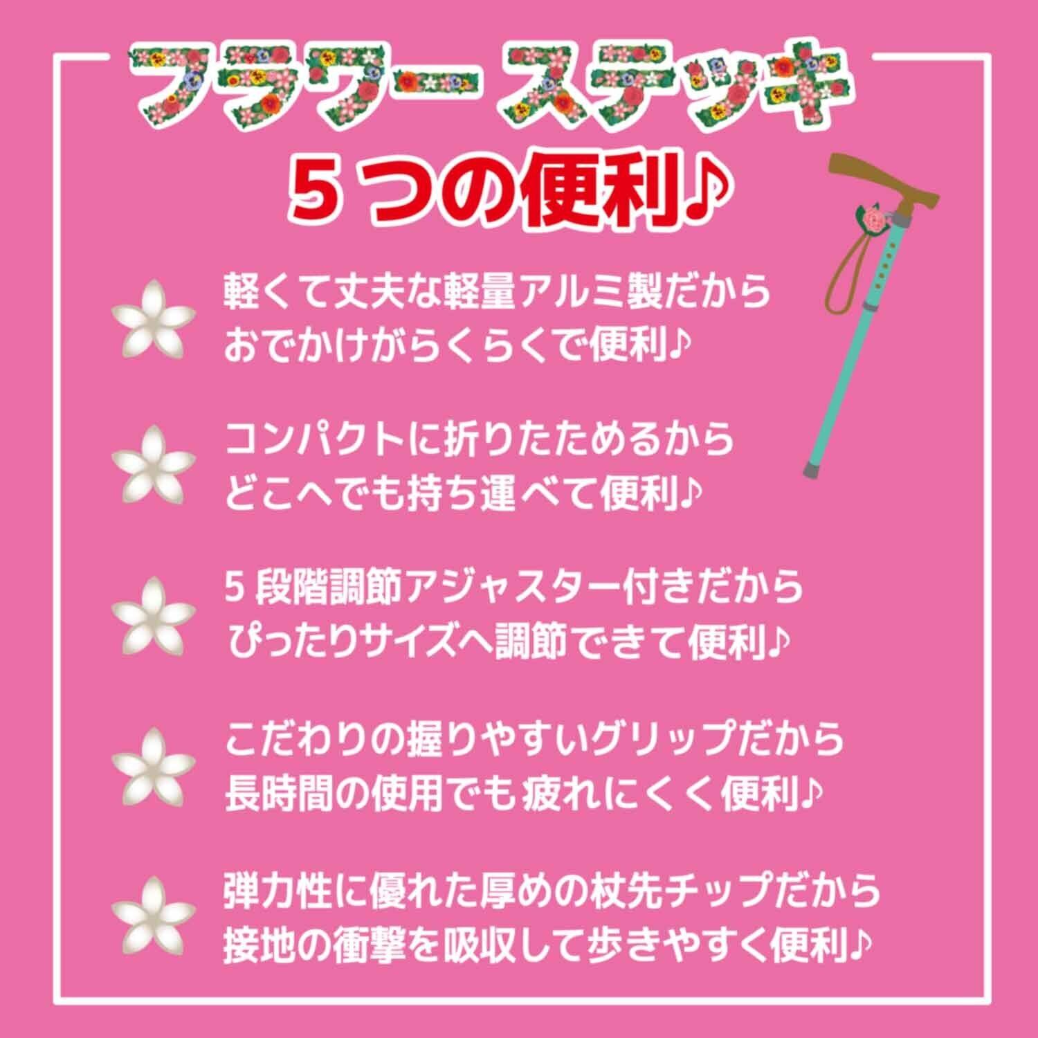 わずか228g!旅行やお出かけの携帯も楽々!花柄が可愛い軽量の折りたたみ杖です。