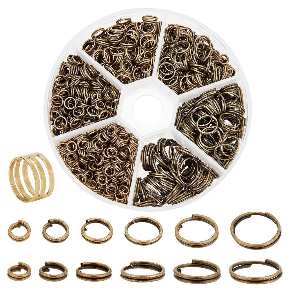 PH PandaHall 6種 鉄製 二重丸カン 4-10mm リング マルカン 丸環 指貫つき 金具セット 基礎パーツ ジュエリー DIY用 アンティークブラウン
