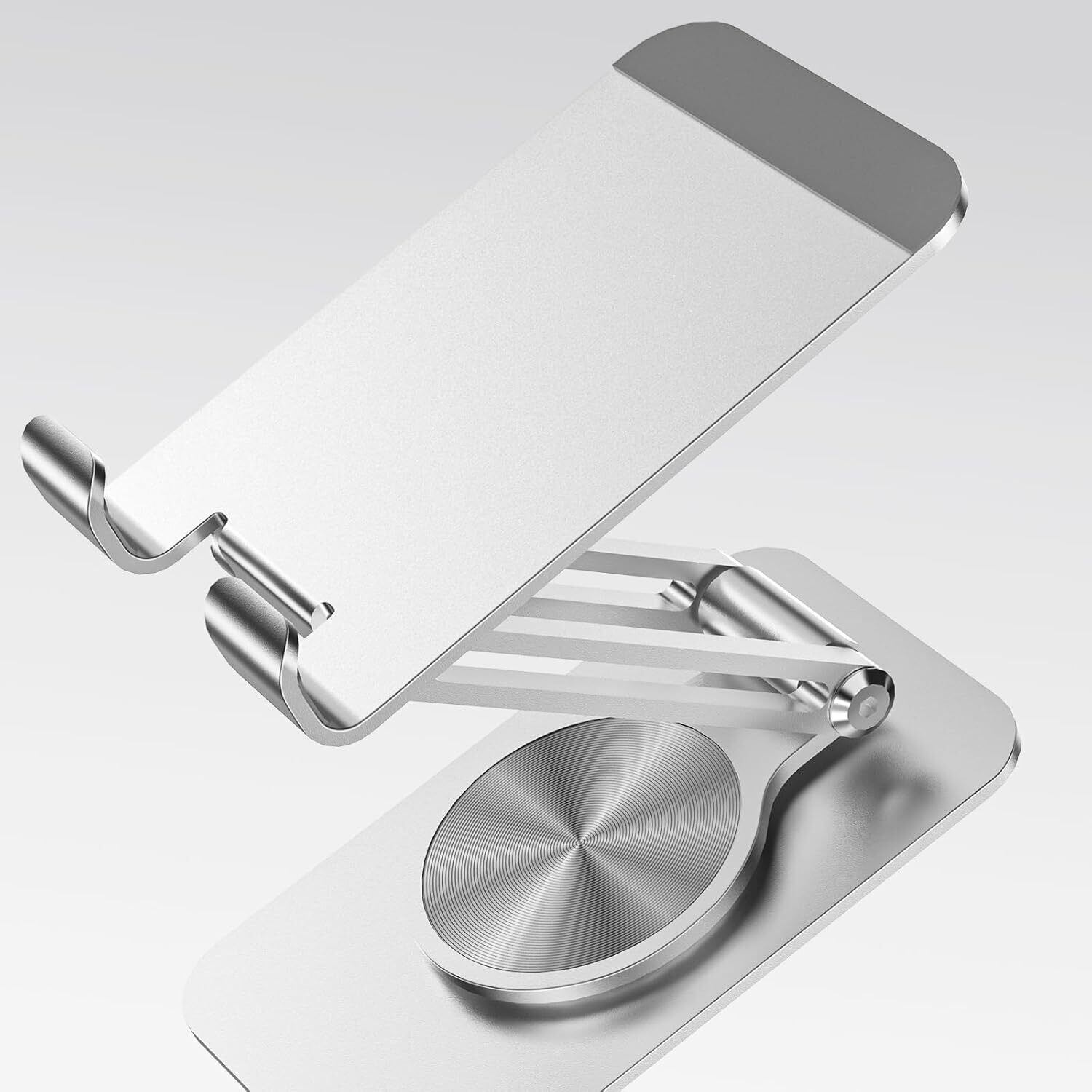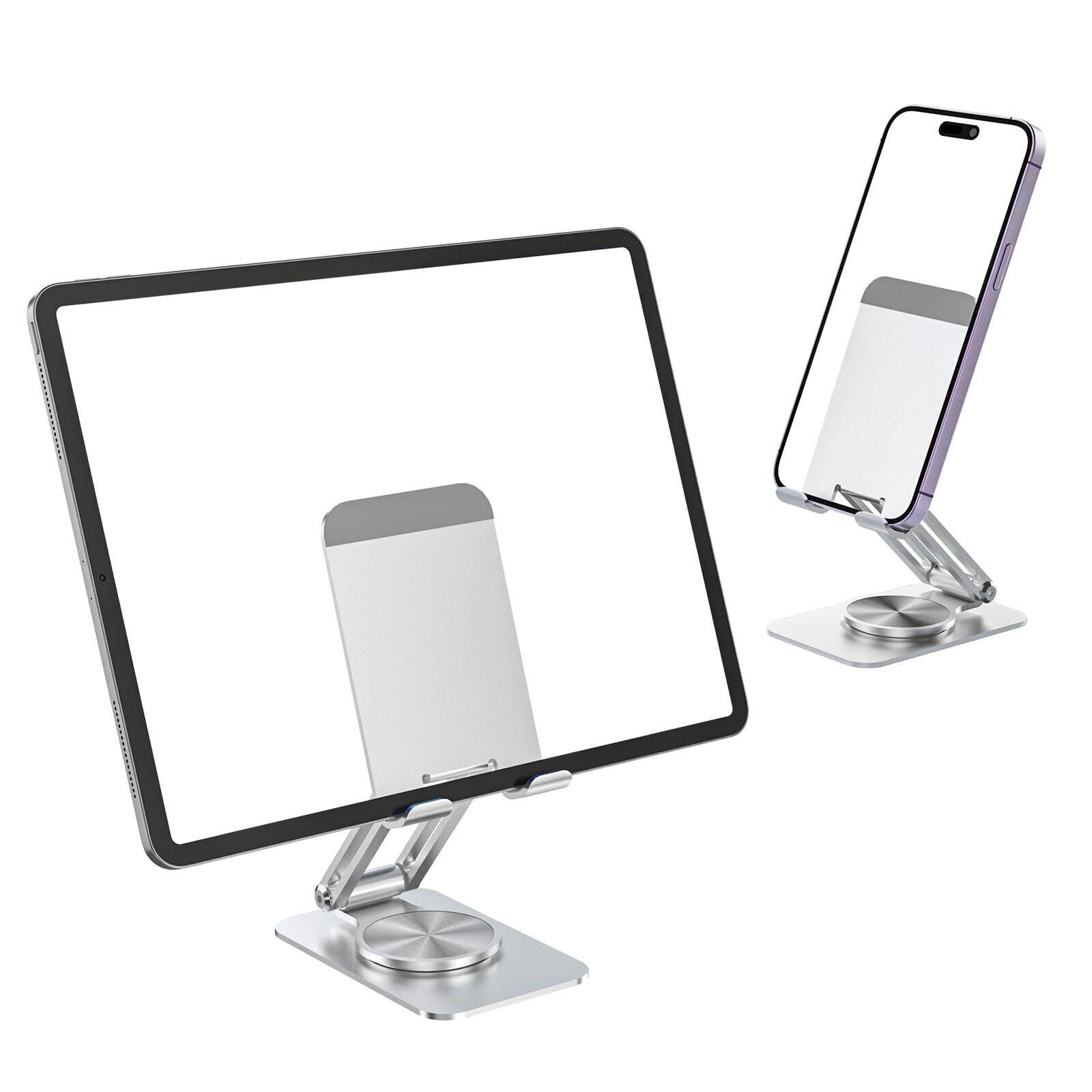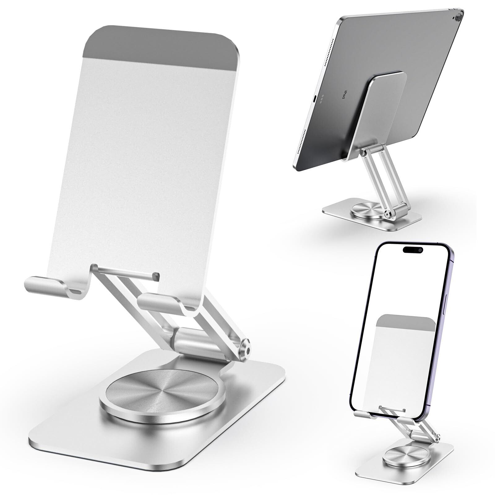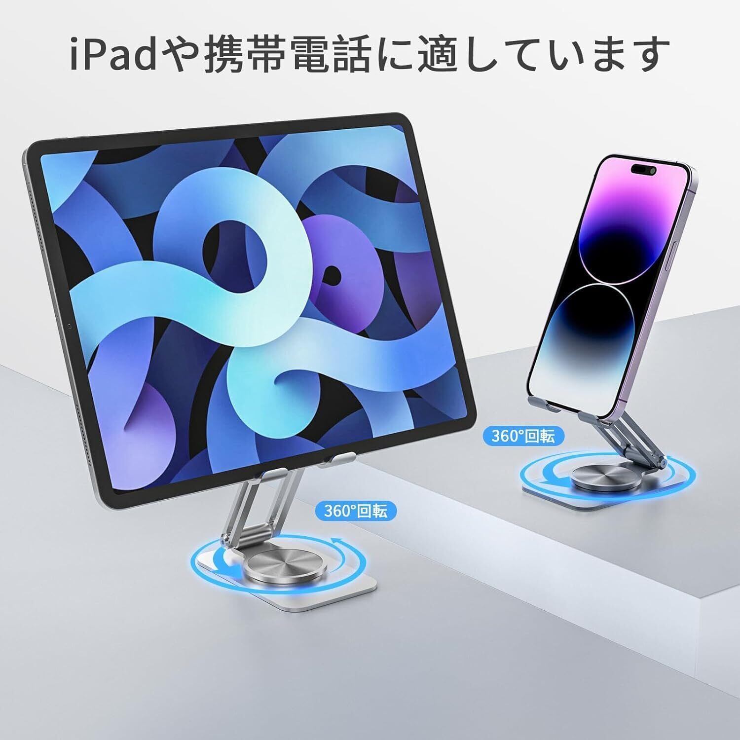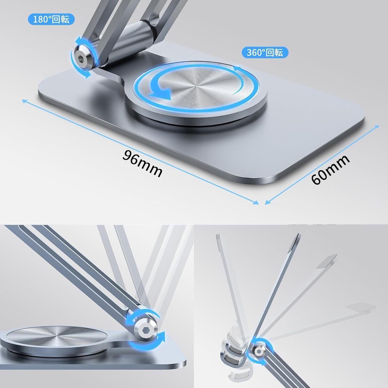 タブレット スタンド アルミ ホルダー 角度調整可能スマホスタンド伸縮式スマホスタンドアルミ合金製無段階360度回転調整 スタンド折りたたみ式 iPad/iPhoneシリーズ、/Androidスマホ対応 携帯電話(ぎんいろ)