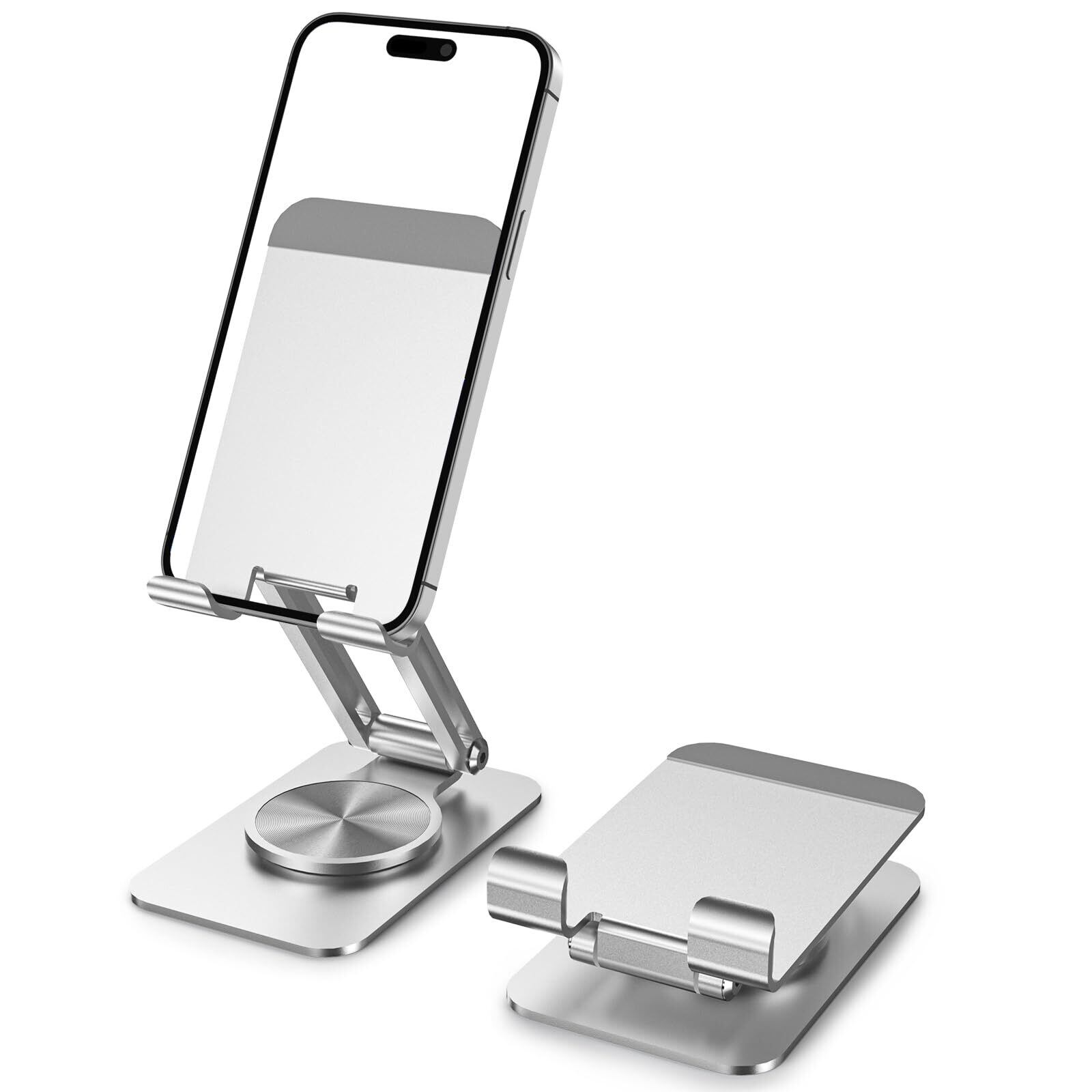 折りたたみ高さ調節可能なスマホスタンド伸縮式スマホ スタンド 卓上 アルミ合金製無段階360度回転調整 iphoneスタンド 折りたたみ式 iPad/iPhoneシリーズ、/Androidスマホ対応 2024軽量化されたアルミ製携帯電話スタンド