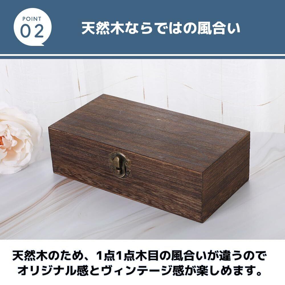 MaT store 木箱 小物入れ 蓋付き 箱 木製ボックス 木の箱 収納 木目 レトロ インテリア (ダークブラウン)
