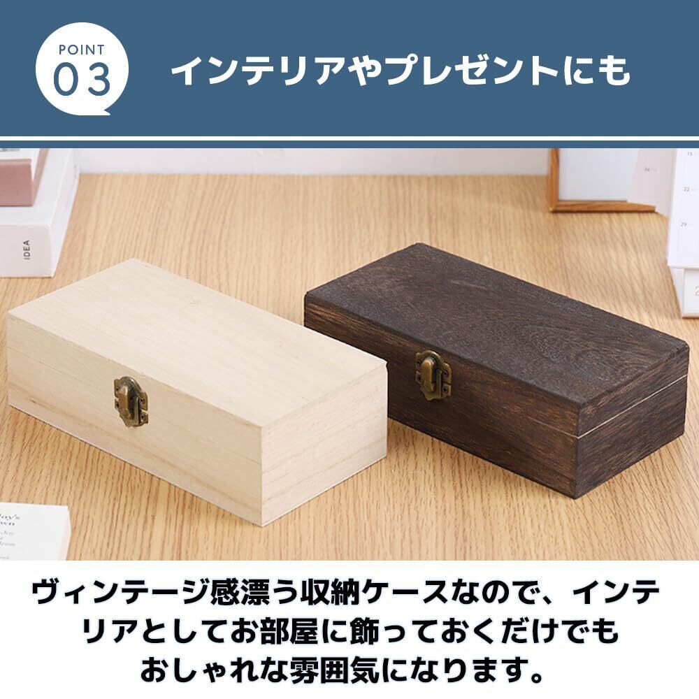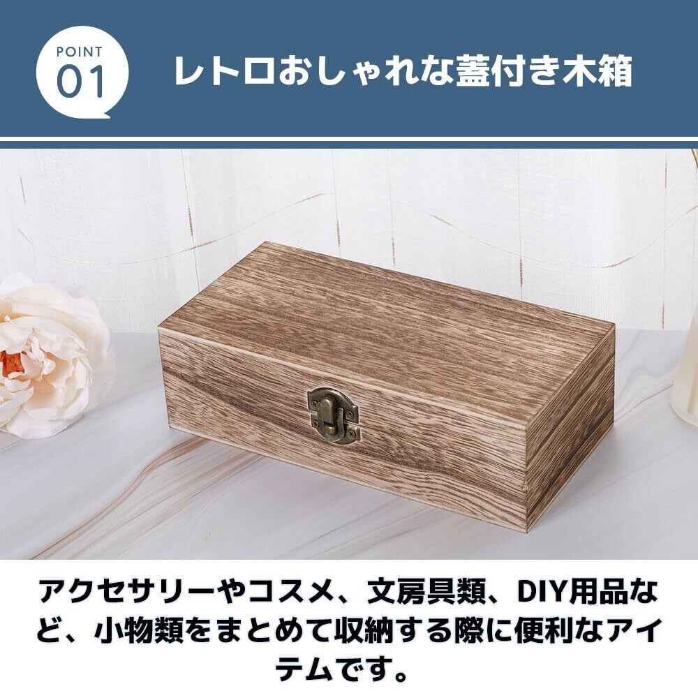 【レトロおしゃれな蓋付き木箱】木製でレトロな風合いがおしゃれな蓋付きの小物入れ。アクセサリーやコスメ、文房具類、DIY用品など、小物類をまとめて収納する際に便利なアイテムです。蓋付きなので、埃などから収納物を守ります。