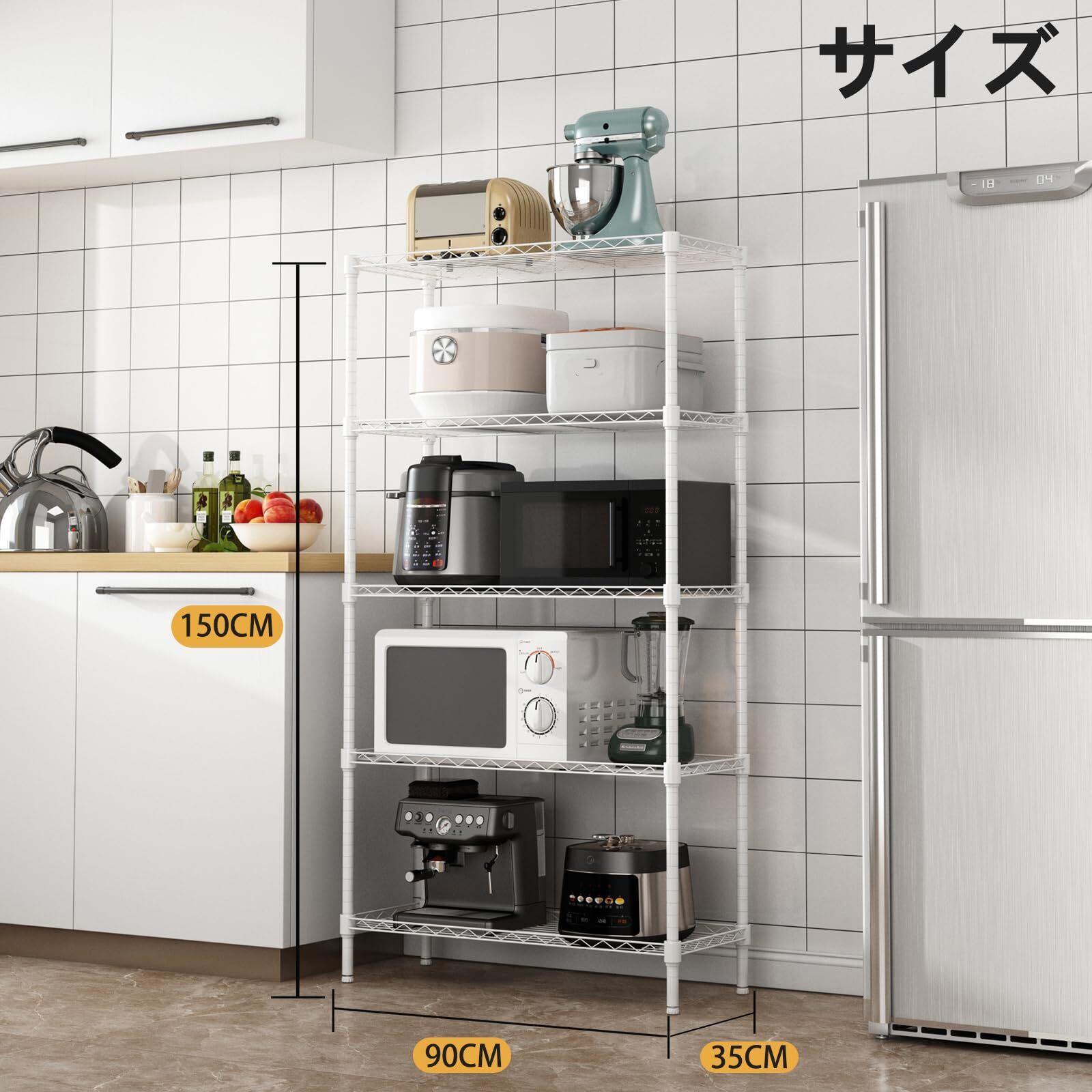 SONG 5段スチールラック 幅90×奥行35cm 高さ150/120/90cm選べる メタルラック シェルフ 収納棚 キッチンラック 収納ラック 高さ調整可能 キャスター付き 日本語説明書 (白 5段-幅90×奥行35×高さ150cm)