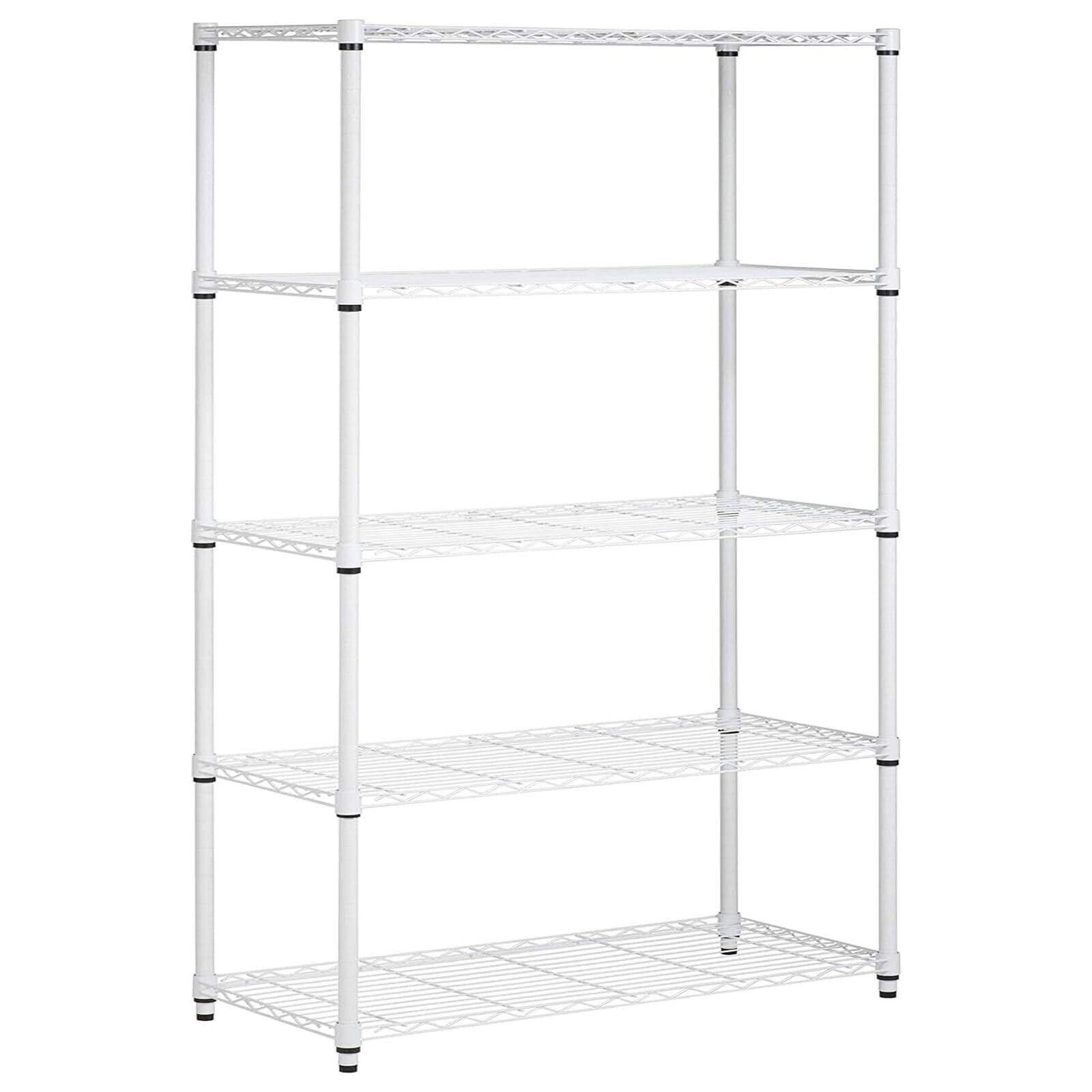 【人気商品】SONG 5段スチールラック 幅90×奥行35cm 高さ150/120/90cm選べる メタルラック シェルフ 収納棚 キッチンラック 収納ラック 高さ調整可能 キャスター付き 日本語説明書 (白 5段-幅90×奥行35×高さ150cm) | gsmshop