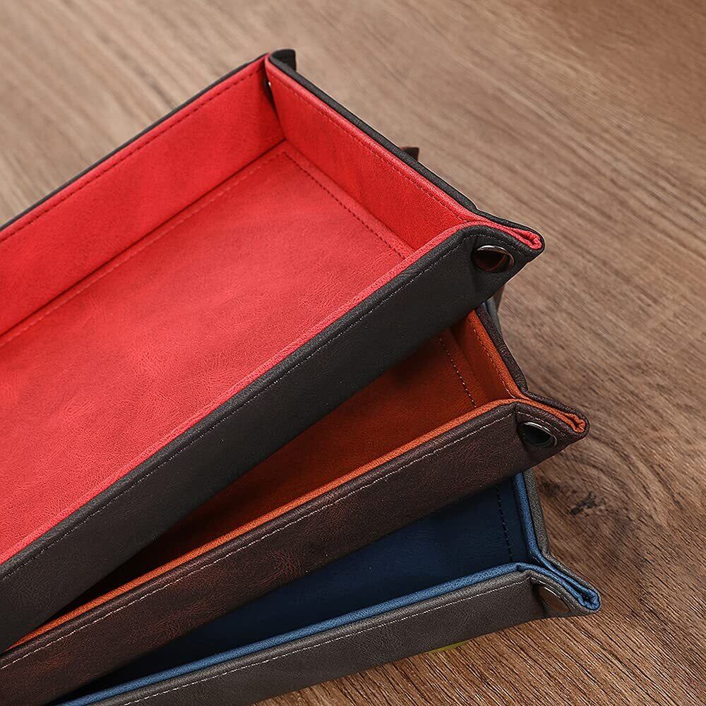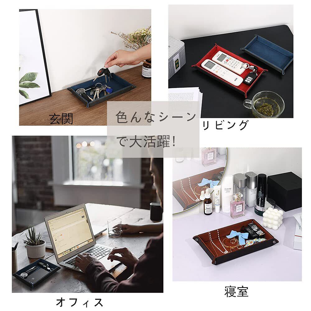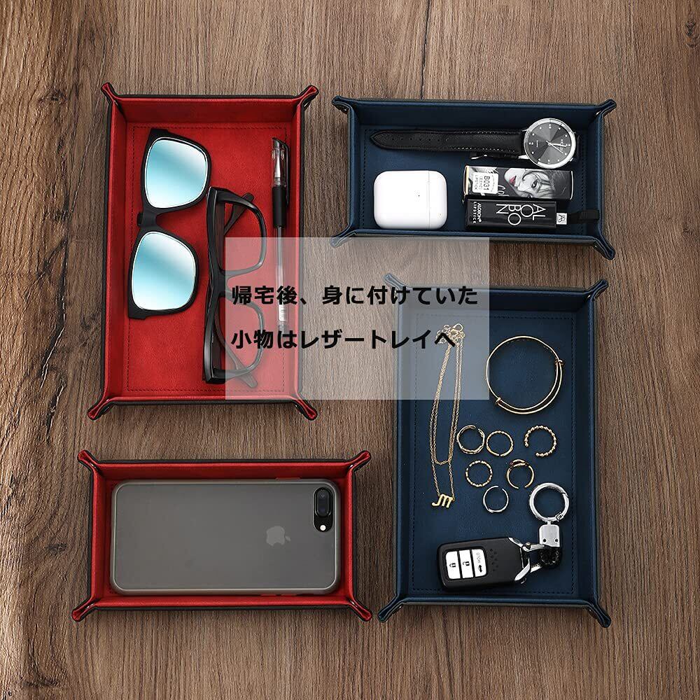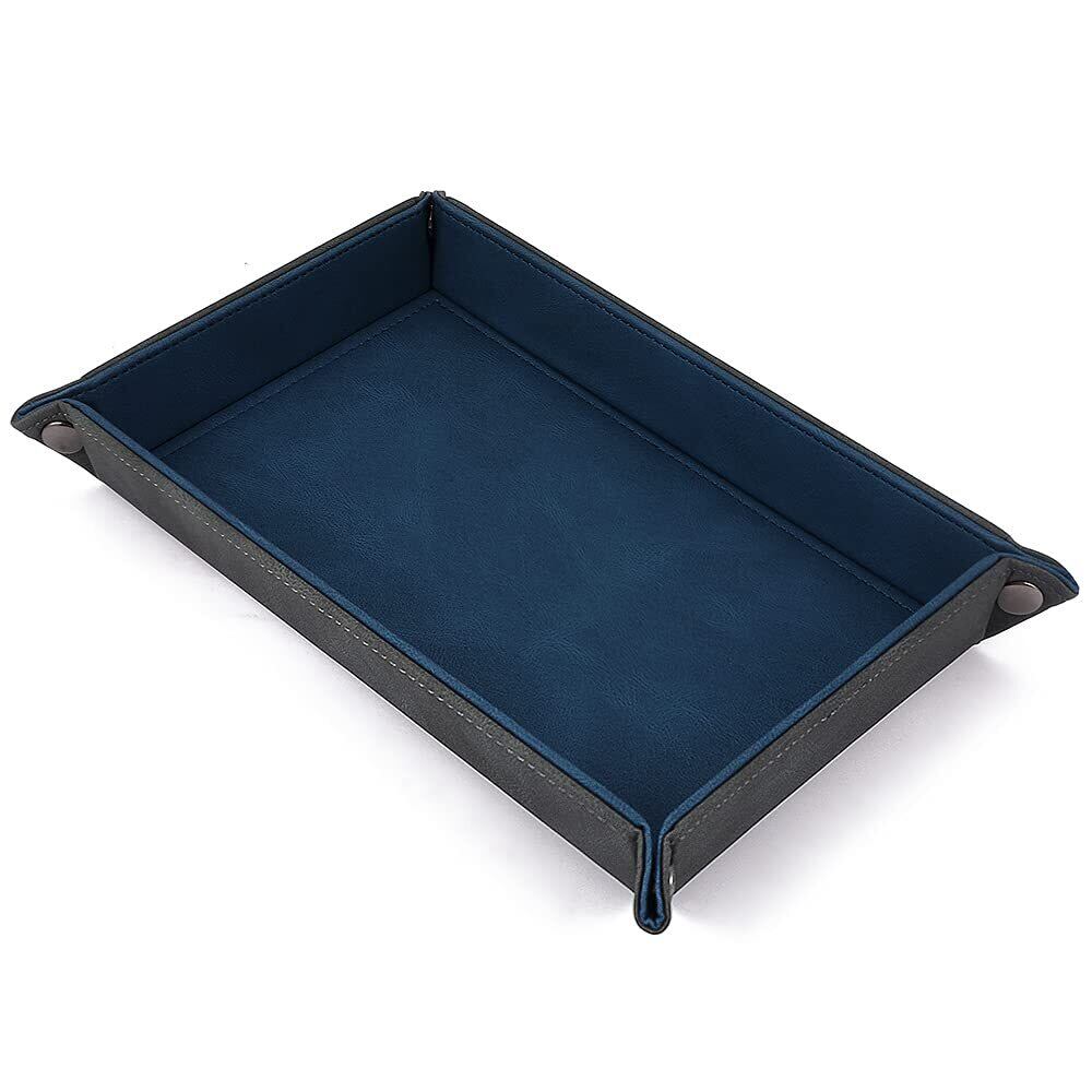レザートレイ 小物入れ アクセサリートレイ 小物トレー 折り畳み式 こものいれ ボックス 腕時計 鍵 スマホ メガネ アクセサリー リモコン 収納ボックス おしゃれ 携帯便利 Mサイズ (グレー×ブルー)