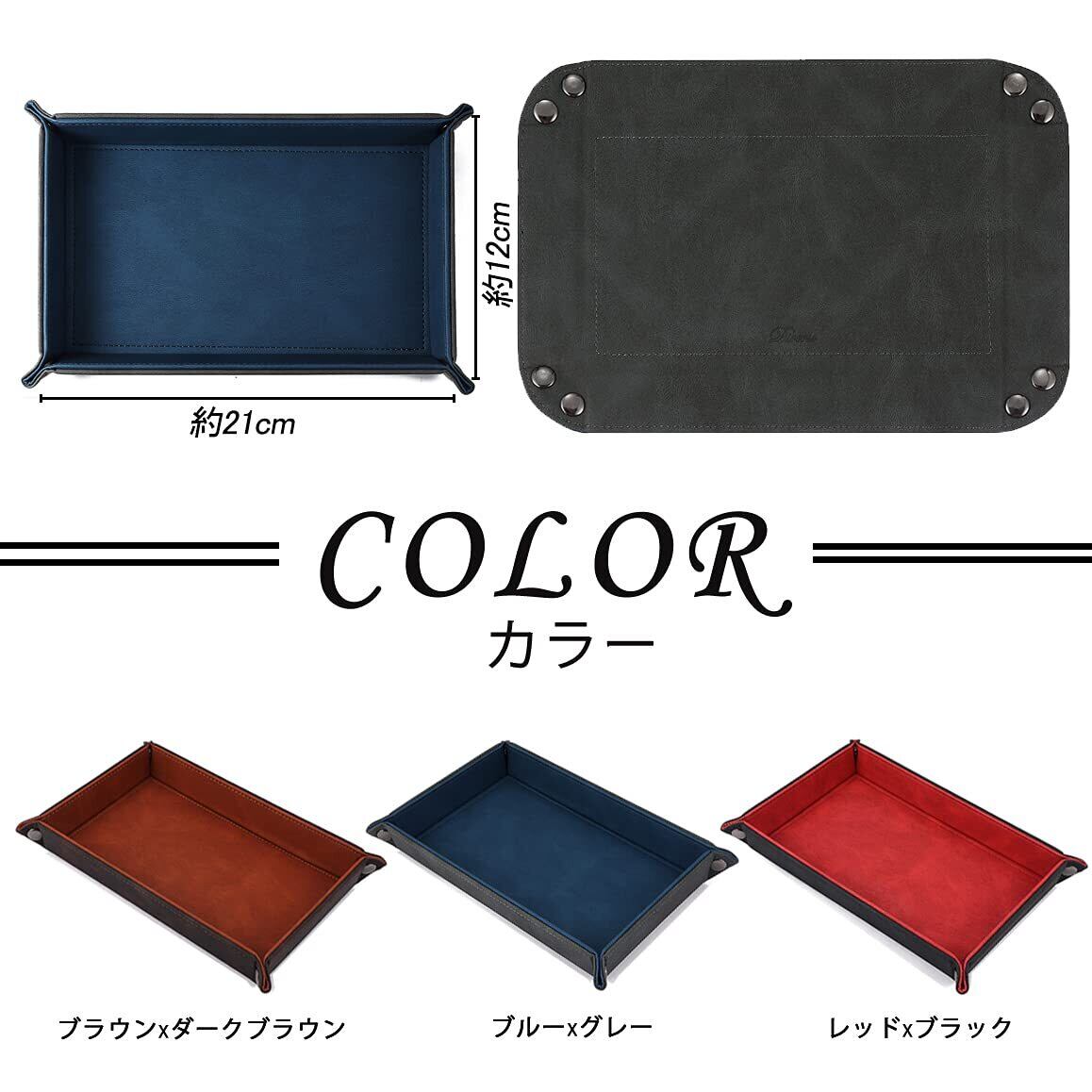 【2022最新】レザートレイ 小物入れ アクセサリートレイ 小物トレー 折り畳み式 こものいれ ボックス 腕時計 鍵 スマホ メガネ アクセサリー リモコン 収納ボックス おしゃれ 携帯便利 Mサイズ (グレー×ブルー) | gsmshop