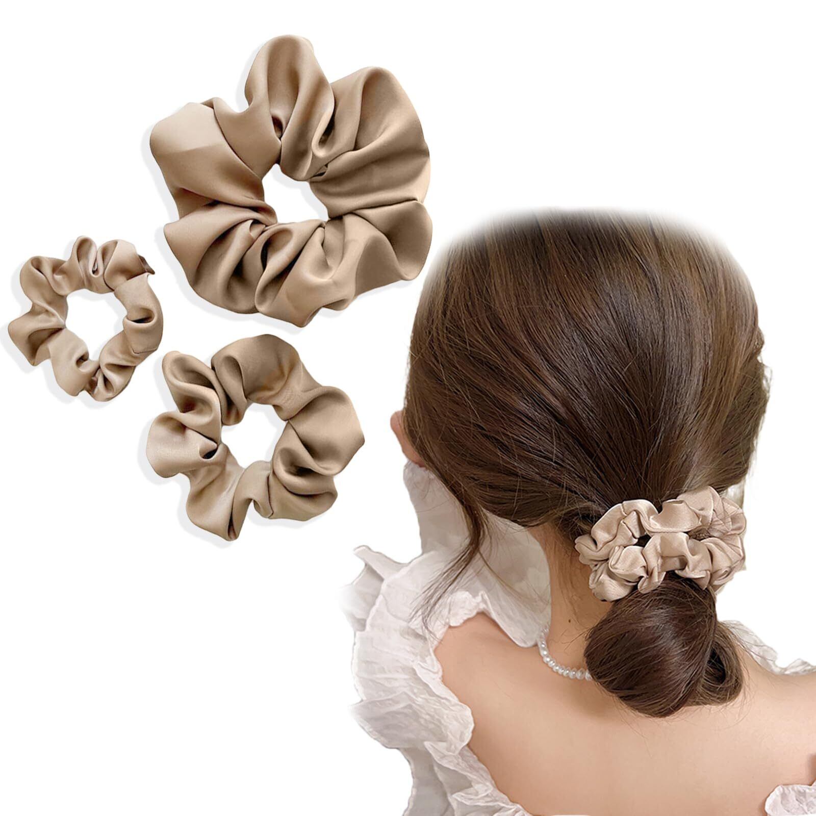 【3本セット】3本セットのおしゃれなシュシュです。家族や友人にシェアできます。素材:シルクとゴム、サイズ:直径約2cm,4cm,6cm。