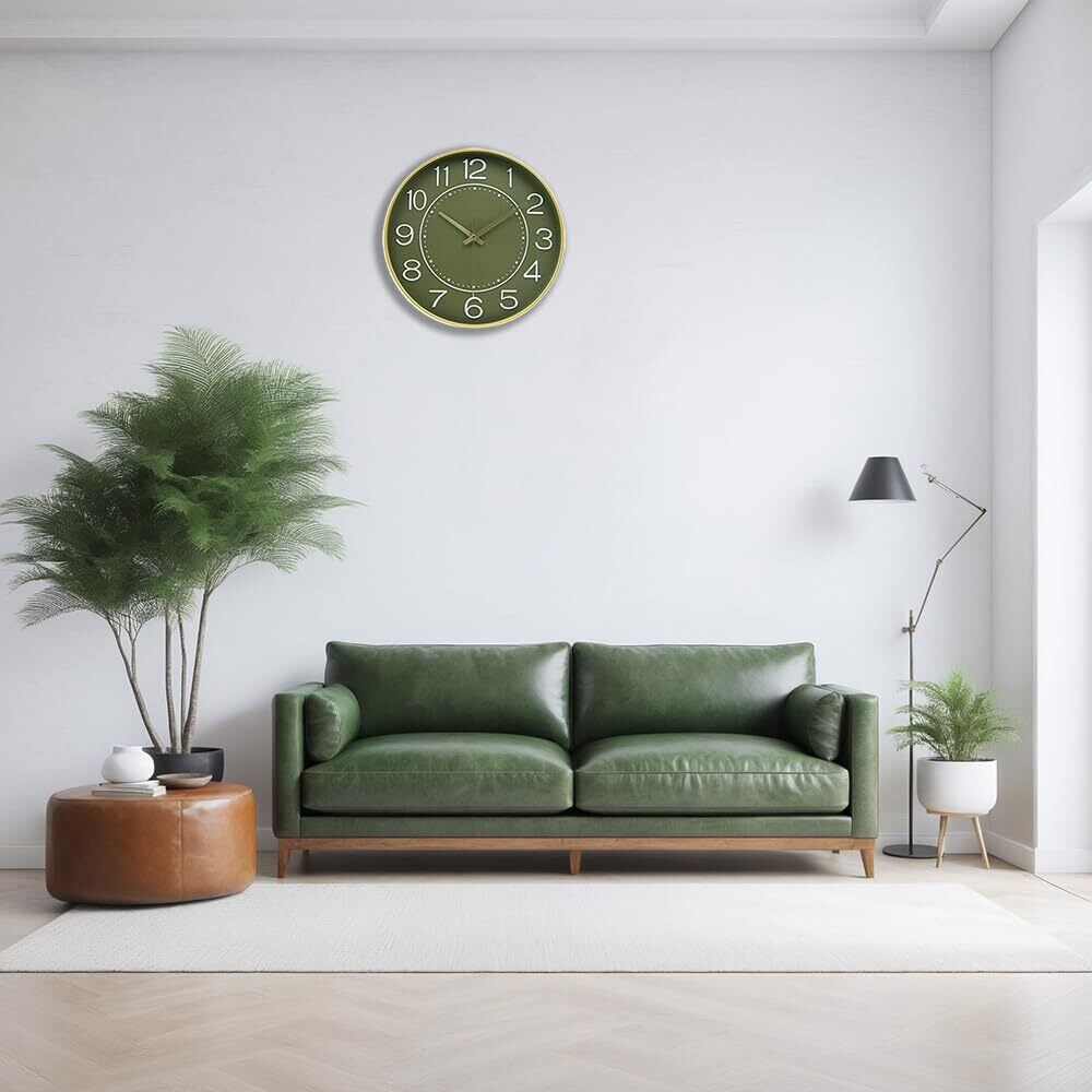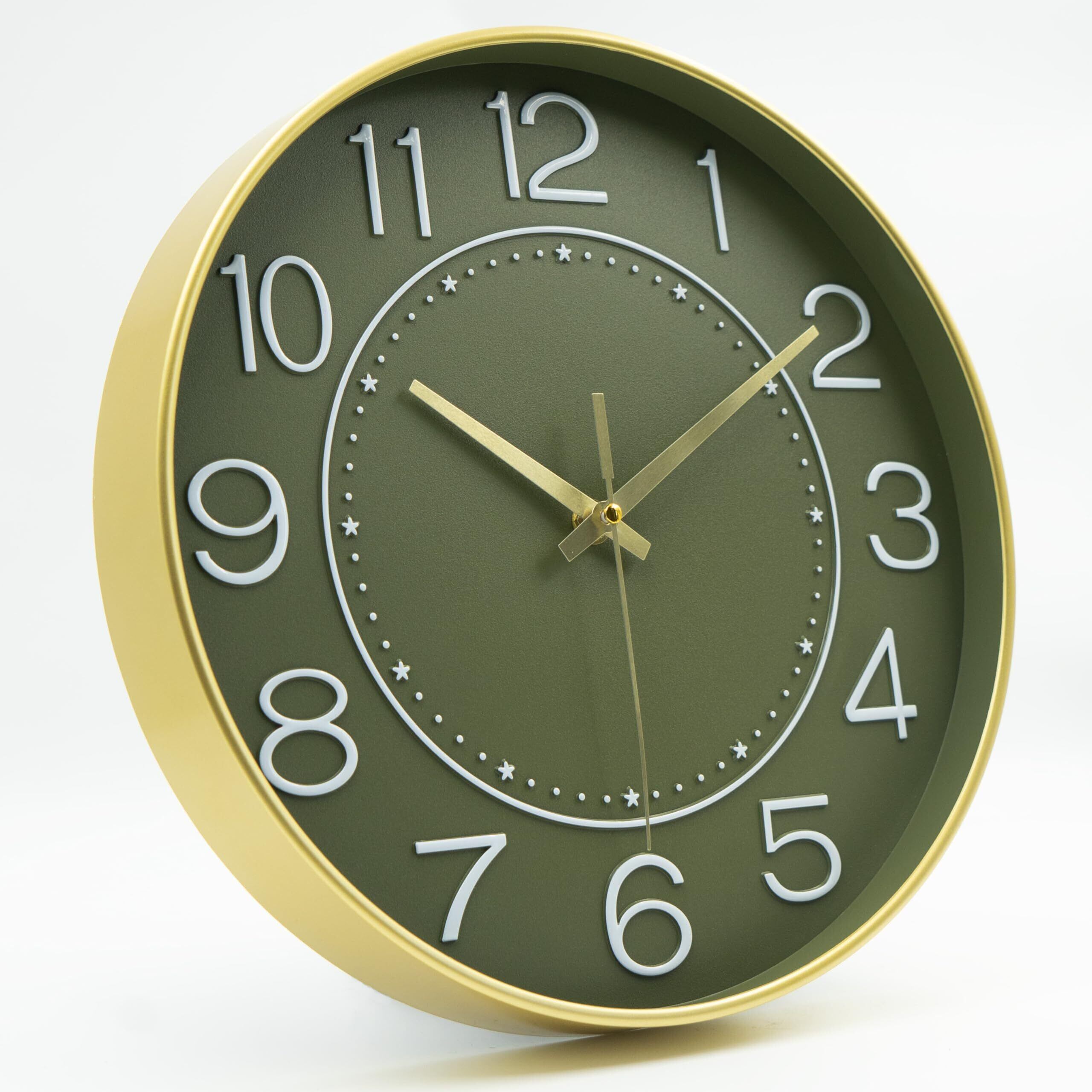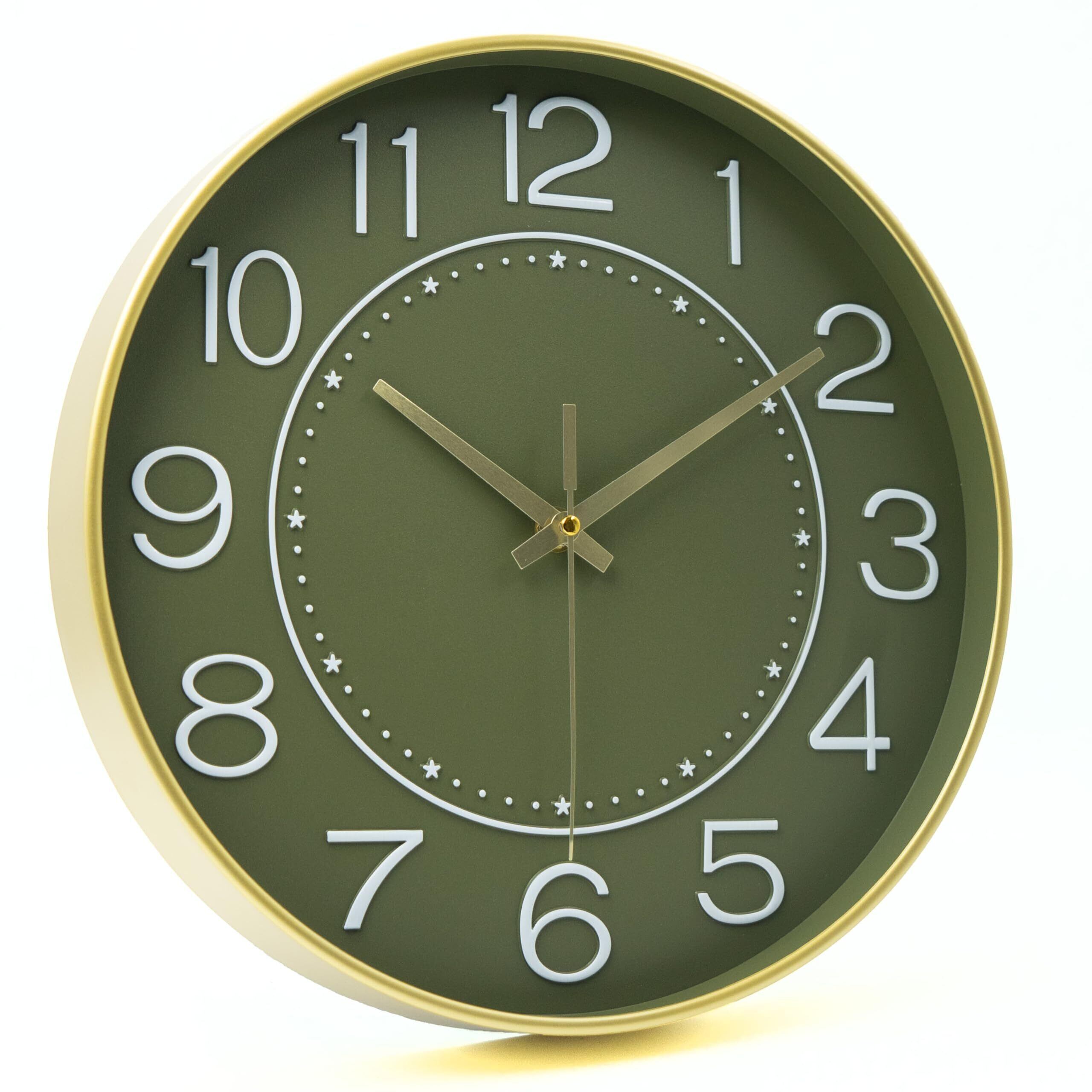 HZDHCLH 掛け時計 おしゃれ 壁掛け 時計 北欧 連続秒針 静音 30cm (グリーンゴールド)