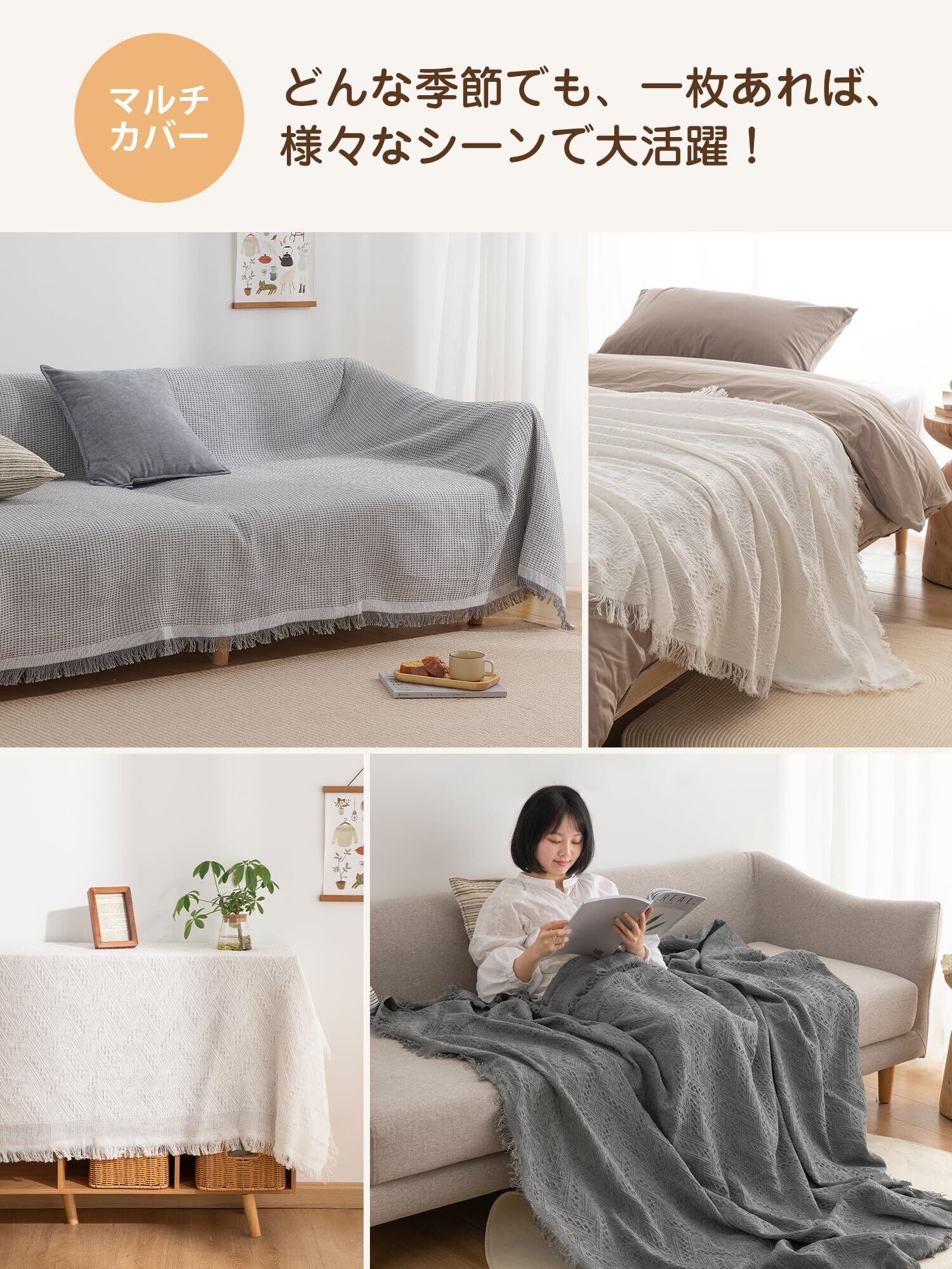 ・【幅広い使用範囲】かけるだけでソファー全体をカバーでき、防塵やキズ防止などの機能があり、ソファーをしかっりと保護できます。多機能で、ベッドカバー、テーブルクロス、冷房毛布、ひざ掛け、防塵カーペット、キャンプカーペット、旅行毛布などとして一年中活躍できます。