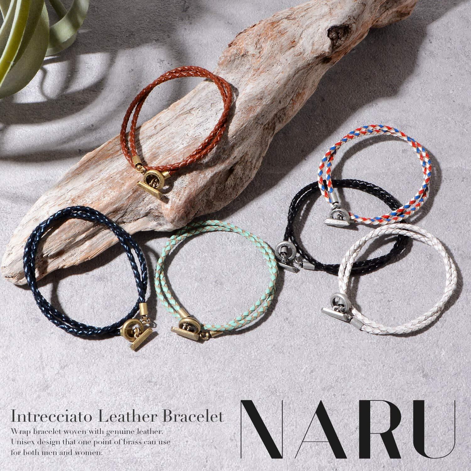 [ナル] 本革 編み込み レザー ブレスレット メンズ レディース ペア おそろい カップル 人気 革 ブランド 2連