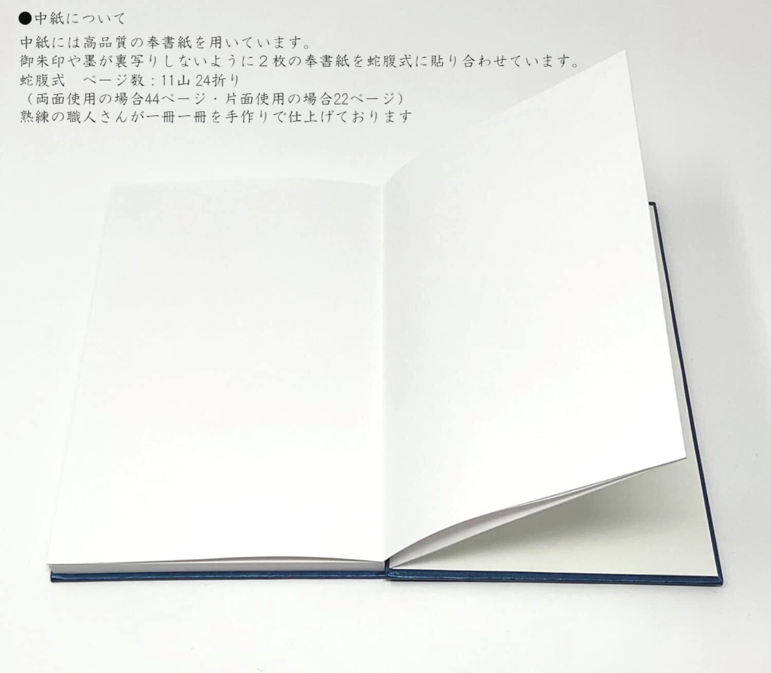 【中紙】高品質の奉書紙を用いています。御朱印や墨が裏写りしないように2枚の奉書紙を蛇腹式に貼り合わせています。