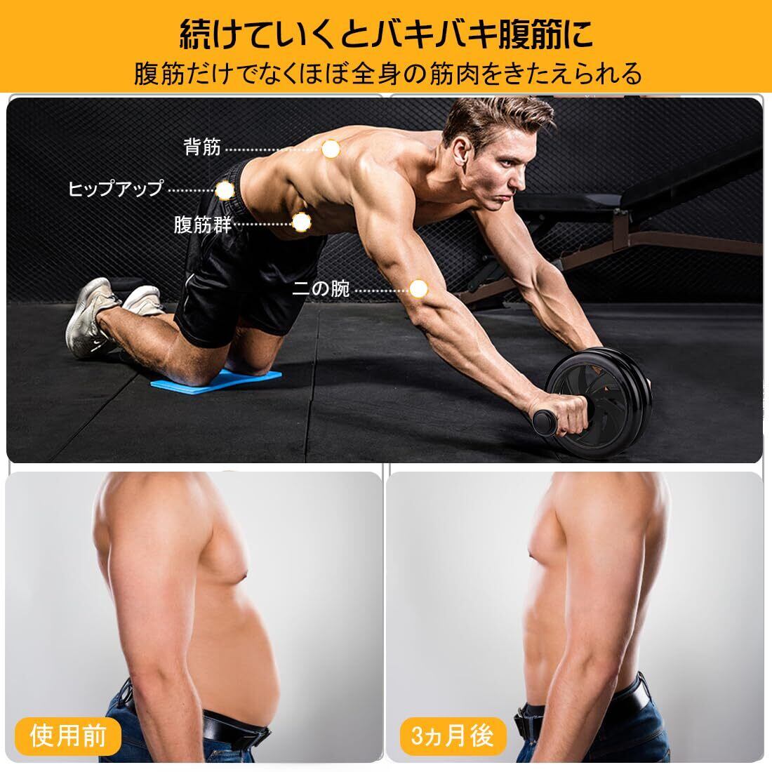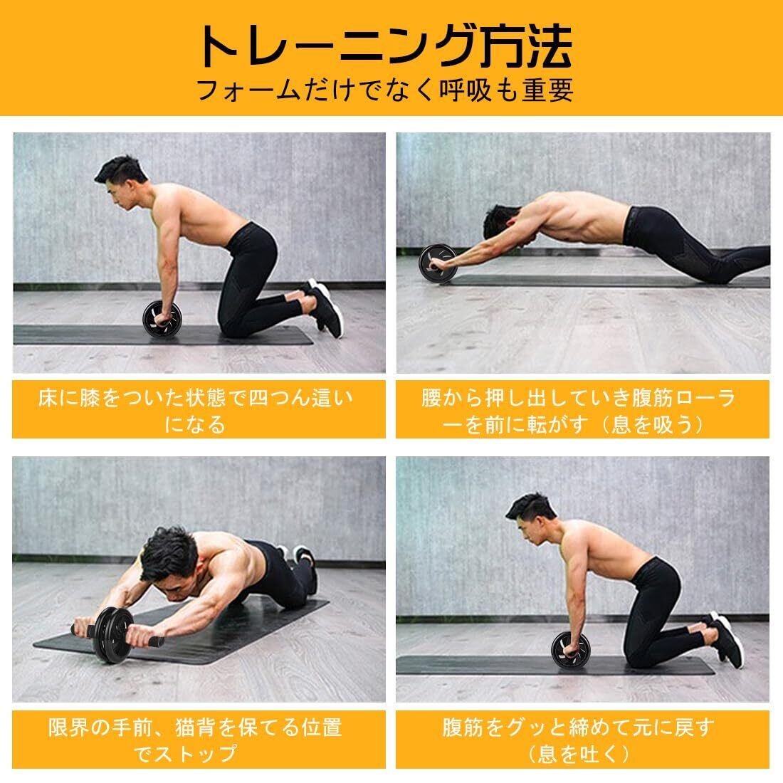 AUOPLUS 腹筋ローラー 膝マット付き アブホイール 静音 一輪 腹筋 トレーニング器具 筋トレグッズ エクササイズローラー 体幹 ストレッチ ダイエット器具 男性/女性 初心者/上級者 アブローラー