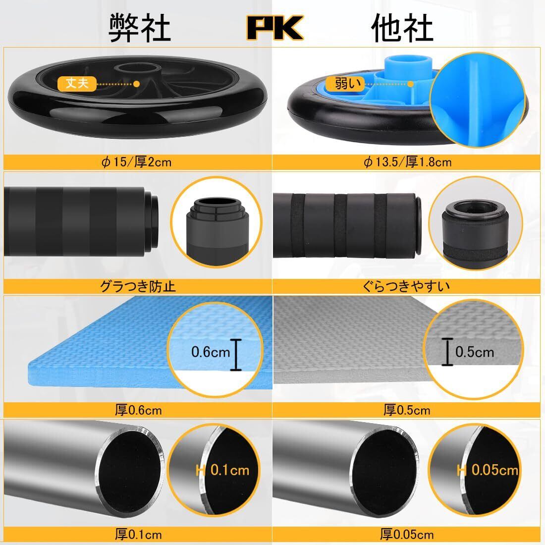 【特価セール】AUOPLUS 腹筋ローラー 膝マット付き アブホイール 静音 一輪 腹筋 トレーニング器具 筋トレグッズ エクササイズローラー 体幹 ストレッチ ダイエット器具 男性/女性 初心者/上級者 アブローラー | gsmshop