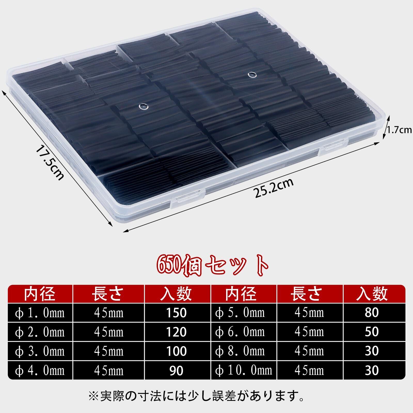 FINGOOO 熱収縮チューブ 650PCSセット・8サイズ 絶縁チューブ 伸縮チューブ ヒシチューブ 防水 高防水性 高絶縁性 高難燃性 収納ボックス付き (黒 650pcs)