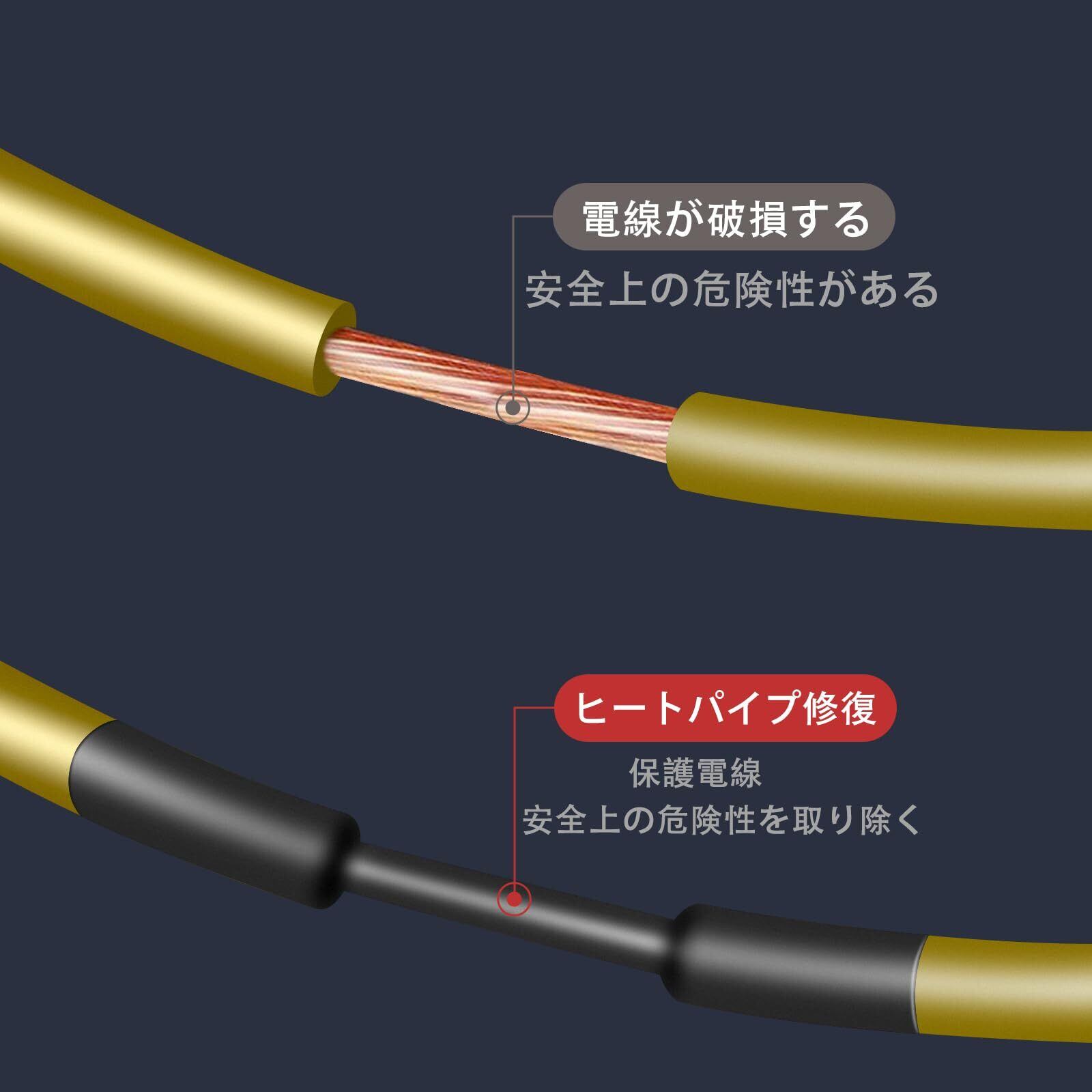 多用途:熱収縮チューブはかぶせた電線に合わせて収縮させる部材です。器内配線の絶縁や保護、端末処理、識別、防水、腐食防止を目的に利用されます。
