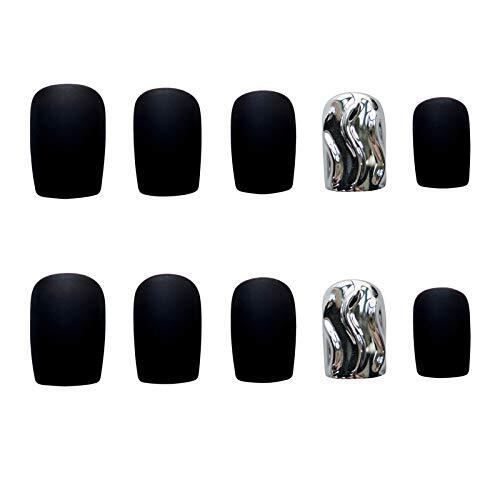 30Pcs 爪付け 水波模様ネイルチップ 両面テープ付き シンプル 硬化タイプ つけ爪 短め (ブラック水波模様)
