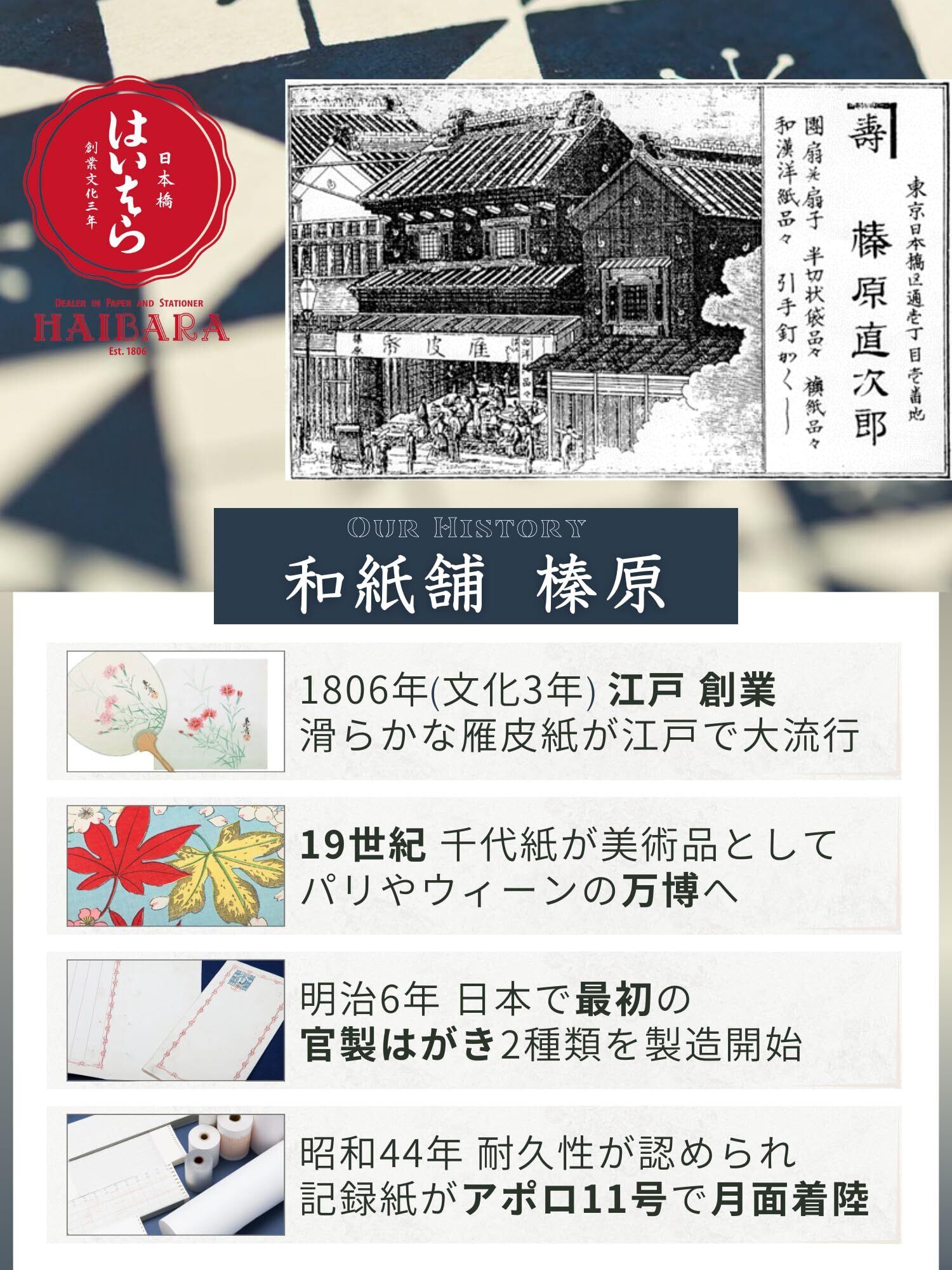 【日本橋で200年続く和紙店】 榛原 の 朱印帳 です。幕末から大正期にかけて創作された オリジナルの千代紙を表紙に、 蛇腹タイプ 大判 サイズ(12×21㎝)の 御朱印帳 。