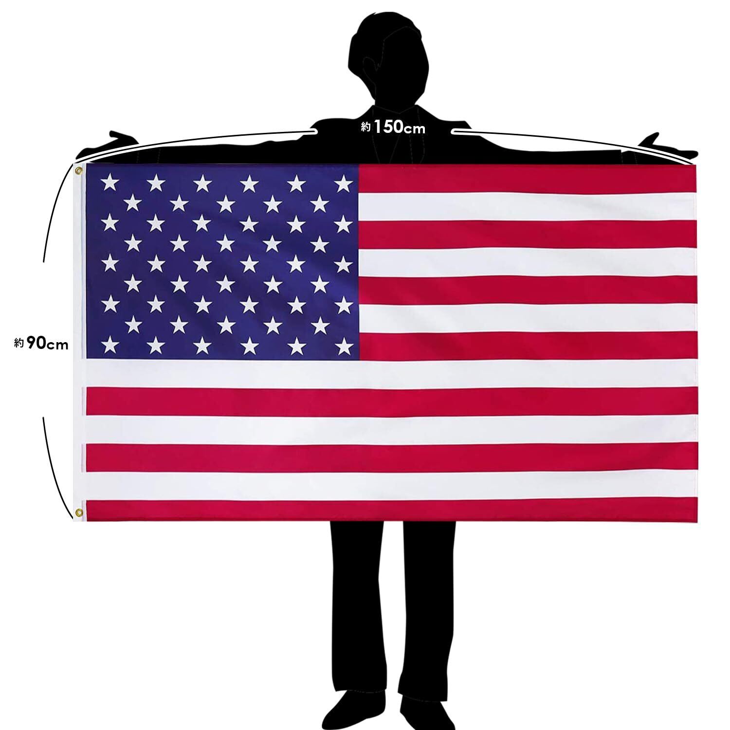 国旗 世界国旗 ハトメ式 フラッグ 90×150cm ポール取り付け用 金属製通し穴 NYANDELMO (02.アメリカ)