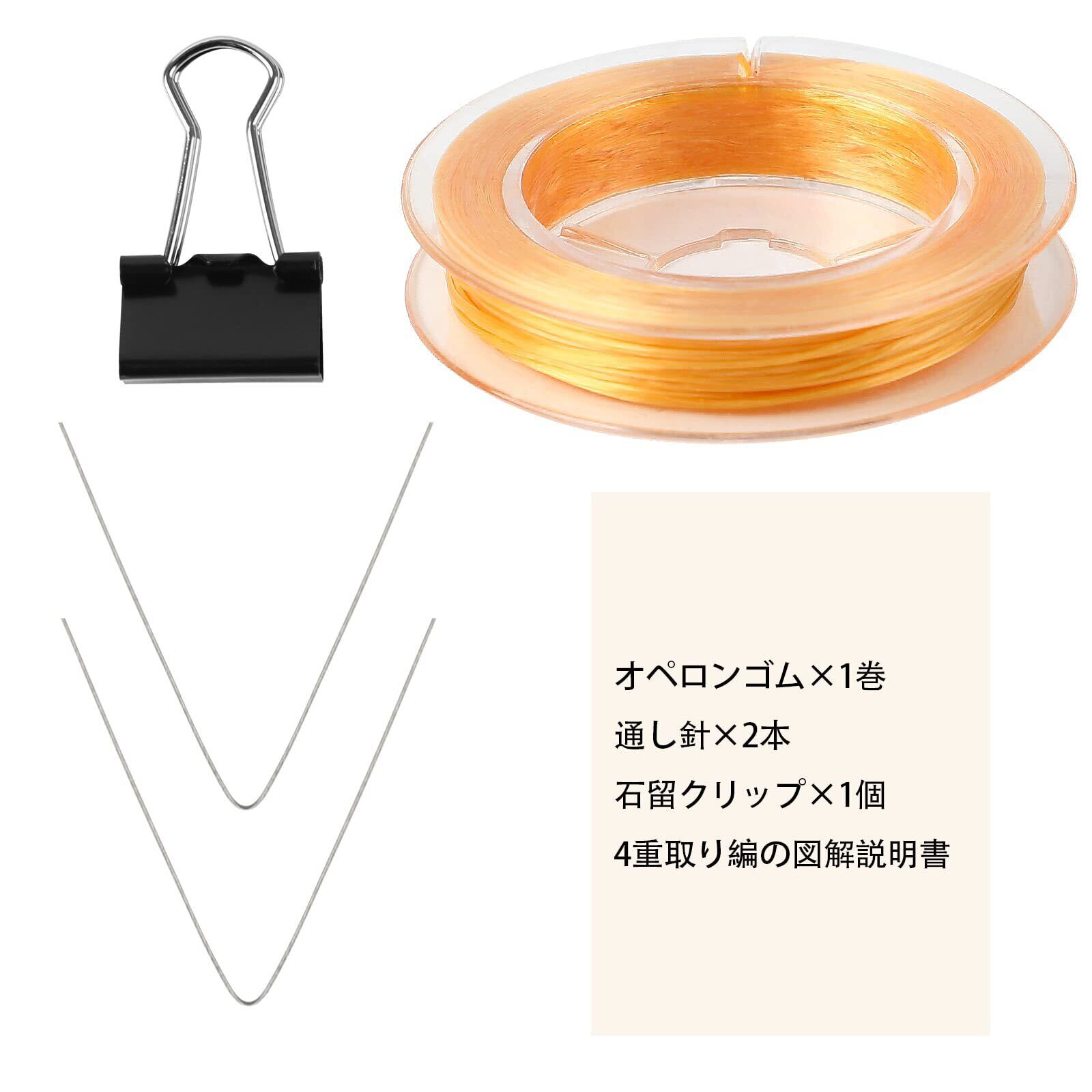 【セット内容】:約 0.8mm(約8M)オペロンゴム×1巻、ビーズ通しワイヤー×2本、石留クリップ×1個、4重取り編の図解説明書
