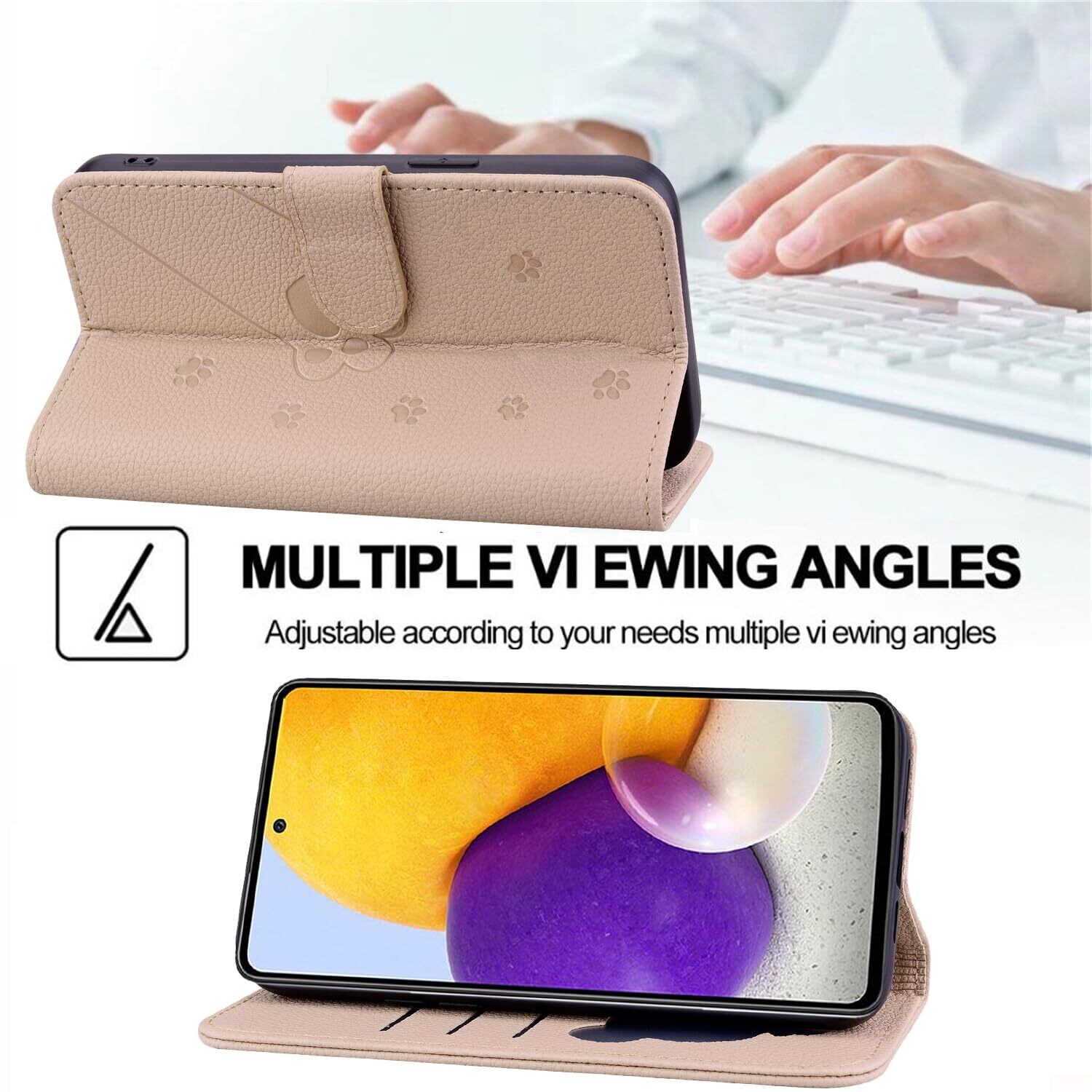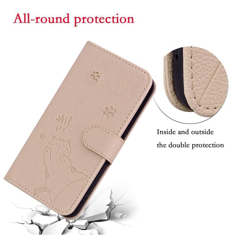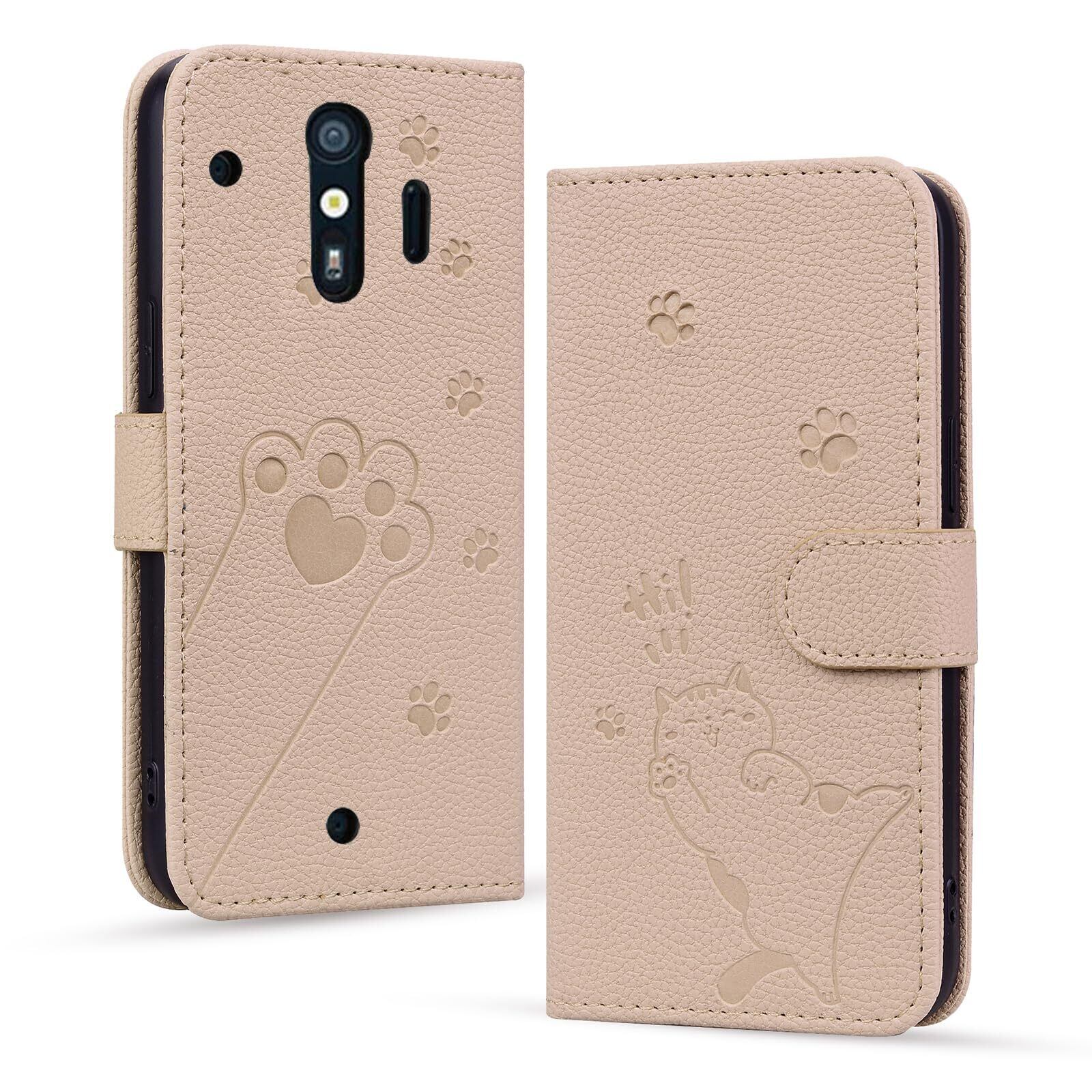 らくらくスマートフォン me F-01L ケース 手帳型 【Mldjomid】docomo らくらくスマートフォン F-42A カバー 富士通 FUJITSU F-42a カバー 手帳型 シンプルなのに可愛猫柄 軽量 PUレザー 全面保護 スタンド機能 カード収納 らくらくスマートフォン me F-01L ケース エレガントなシンプルさ 人気 上質 かわいい猫の足模様 (アプリコット)