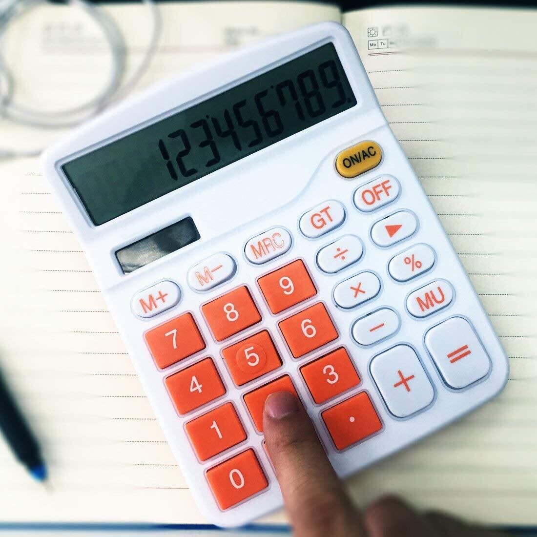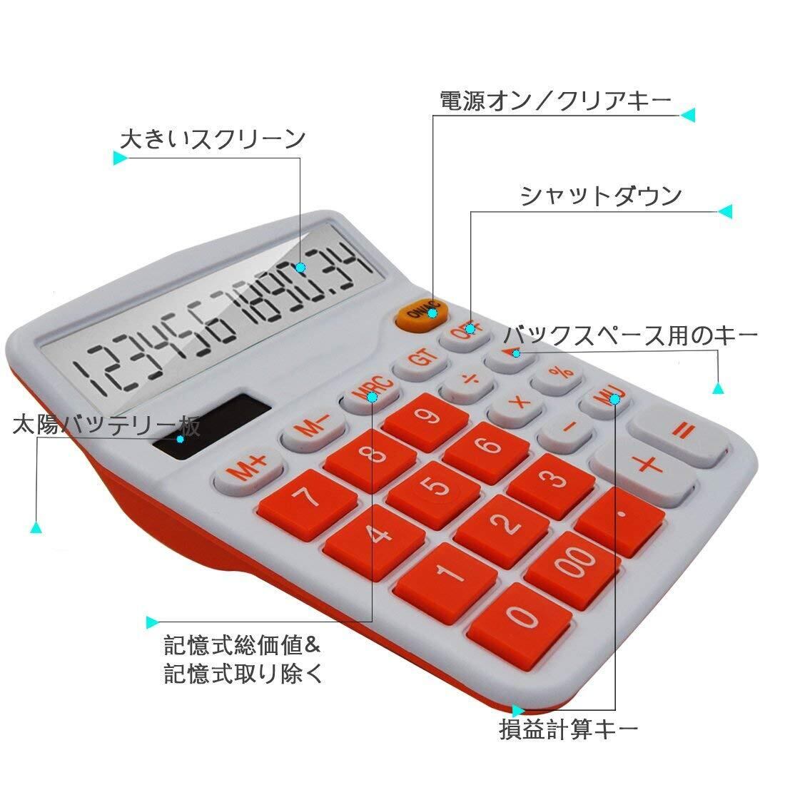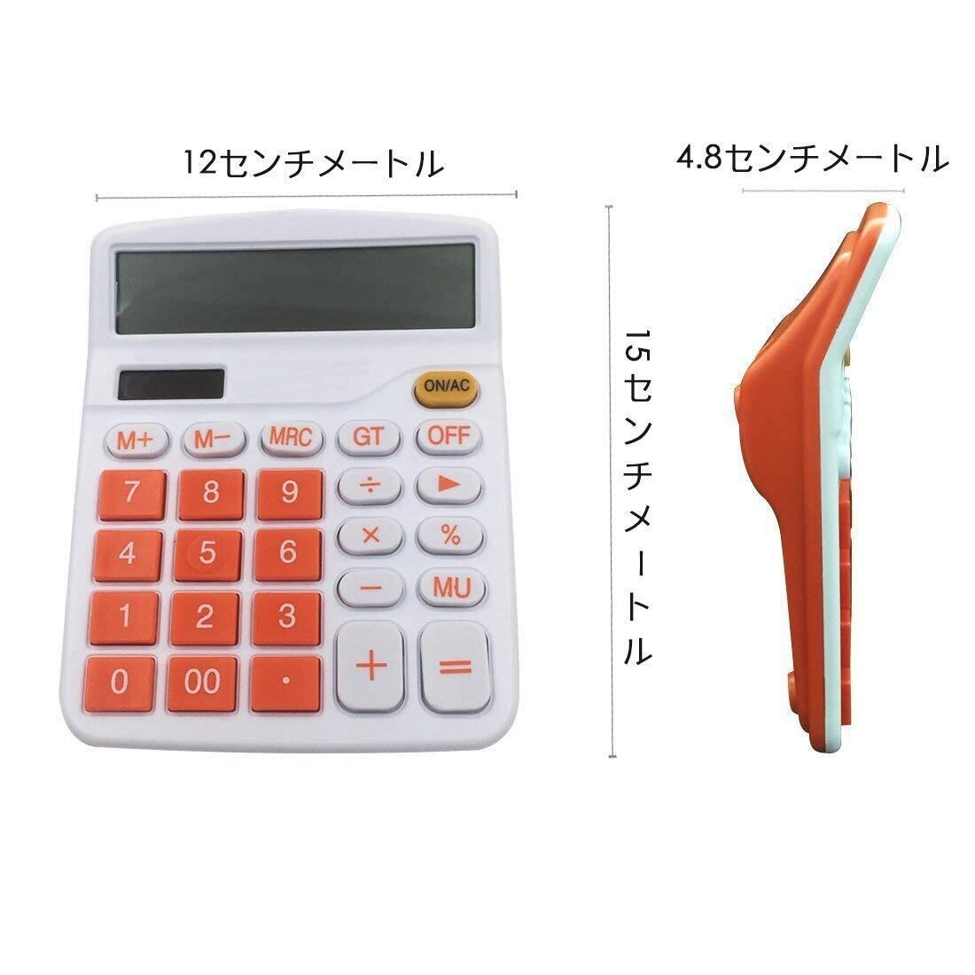 OFFIDIX 電卓 12桁 計算機 簿記 電卓 卓上計算機 おしゃれ 大型ディスプレイ ソーラー電卓 ソーラーと電池二重電源 携帯便利 オレンジ