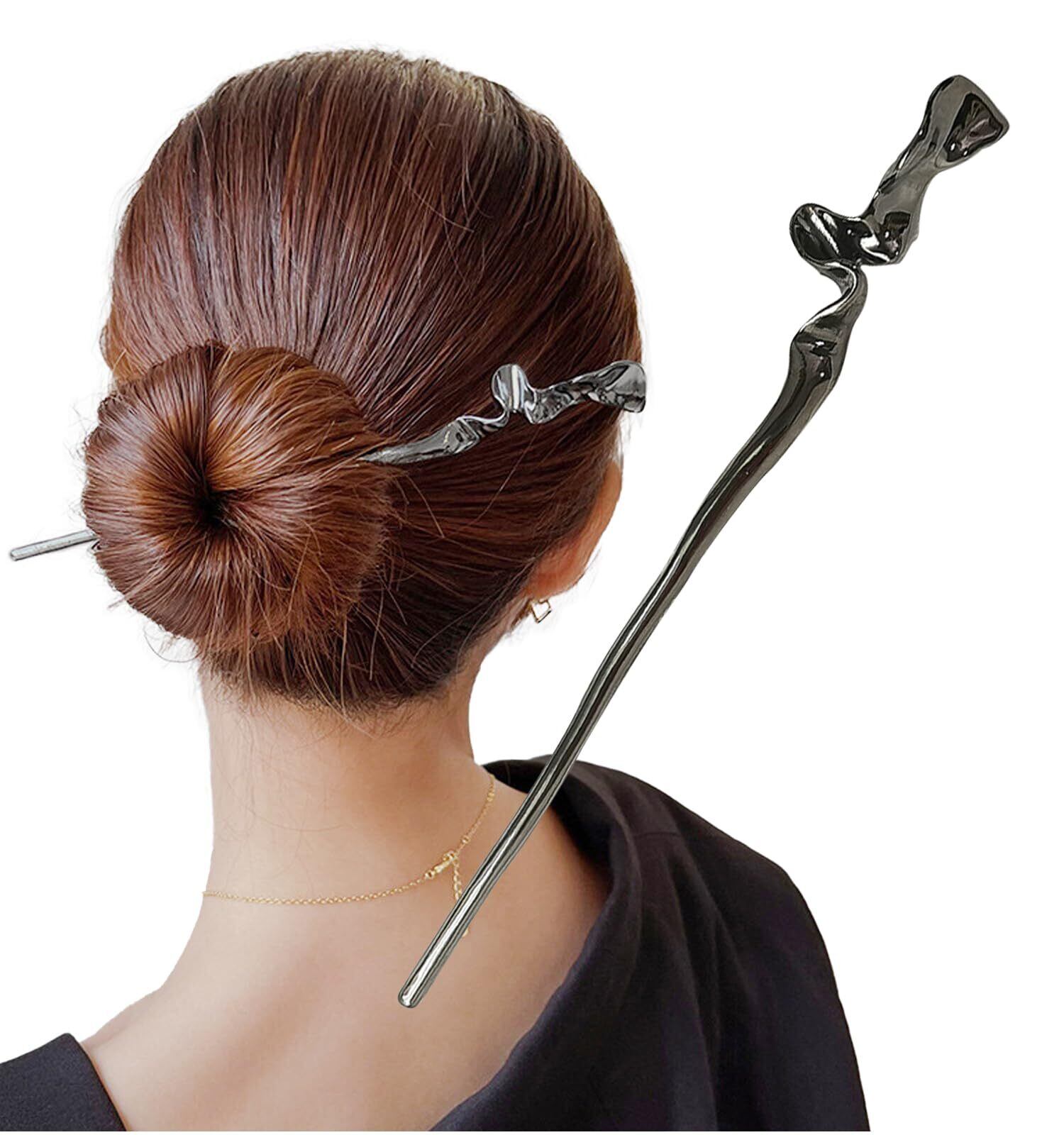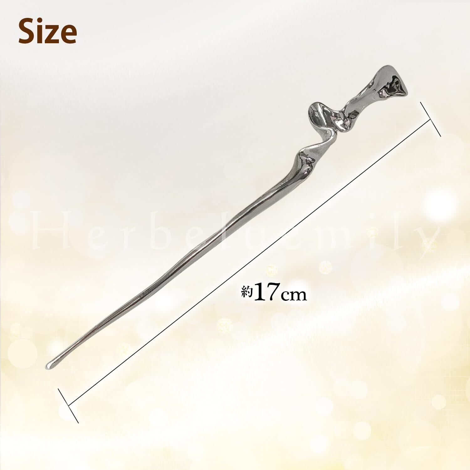 メタリックでシックなデザインのかんざし。浴衣や着物などの和装にはもちろん、普段使いもできる優秀アイテム。これ一本でおしゃれなまとめ髪が実現します。