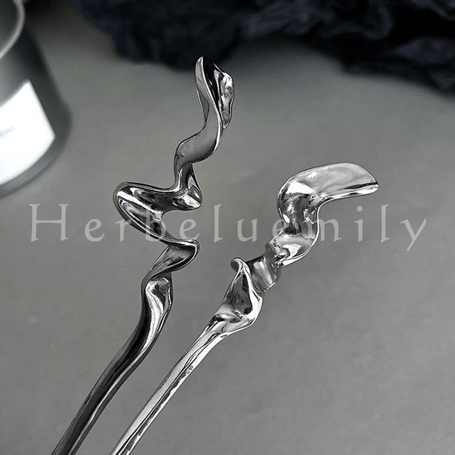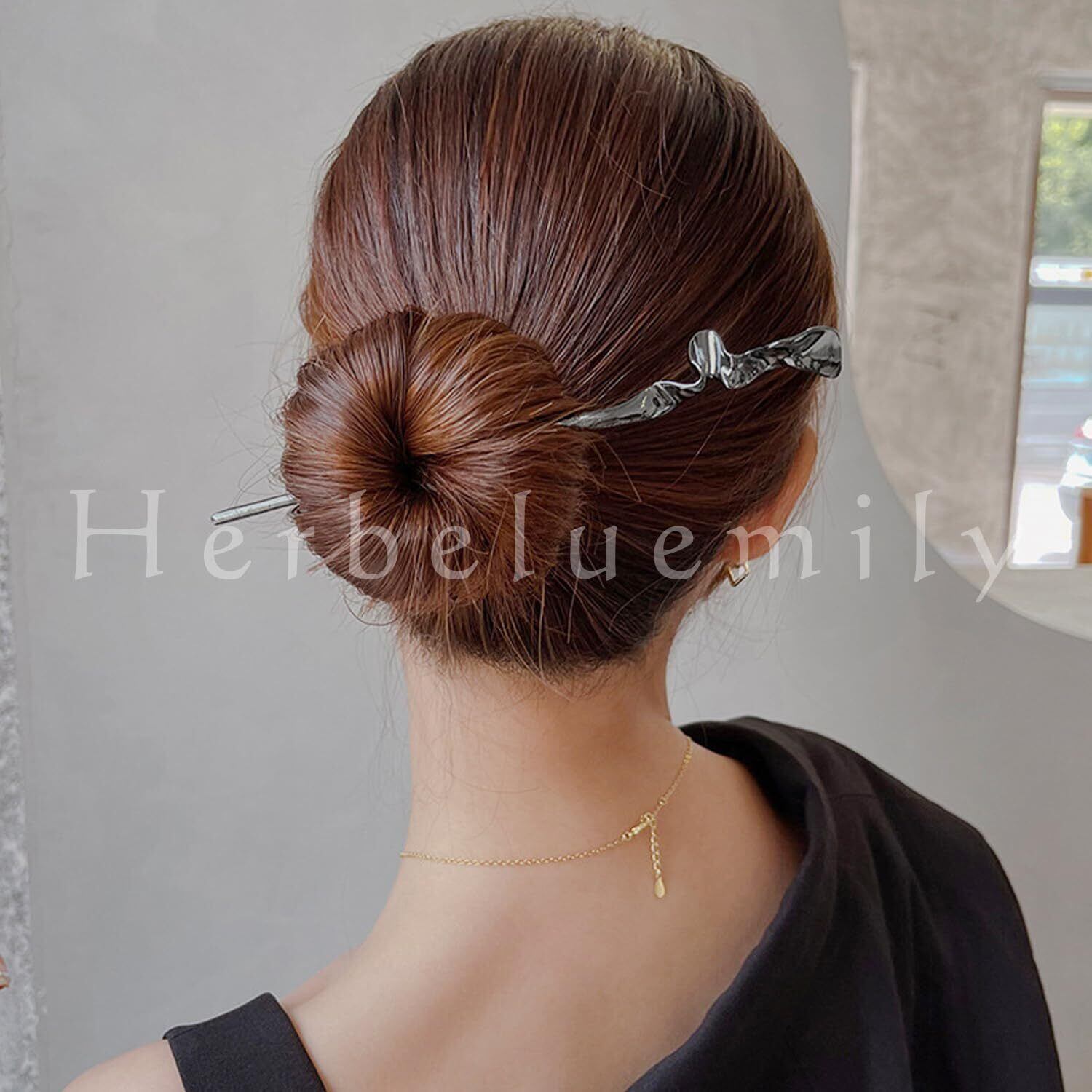 [Herbeluemily] かんざし 簪 ヘアスティック 一本挿し 髪飾り シンプル ヘアアクセサリー シンプル 浴衣 ガンメタ HM-0129-R01-GM