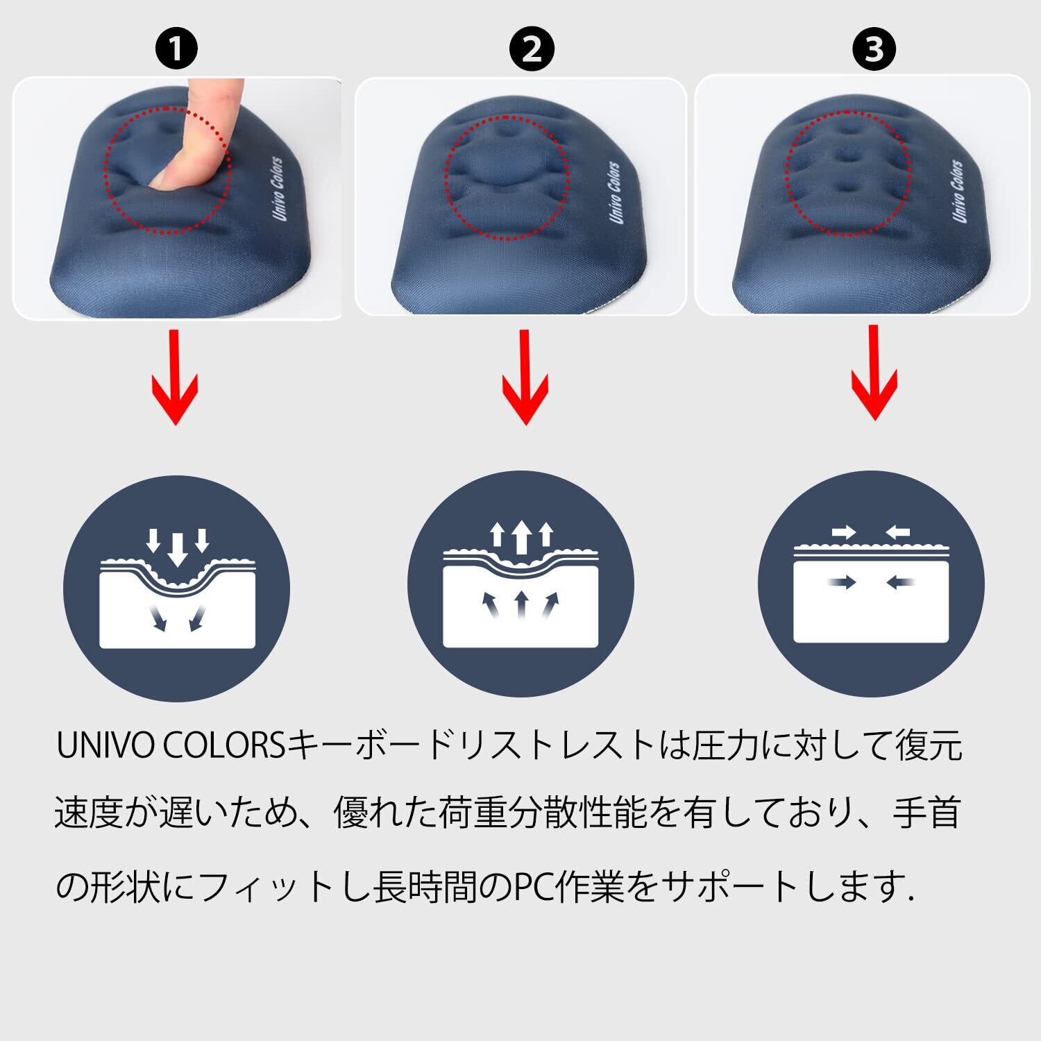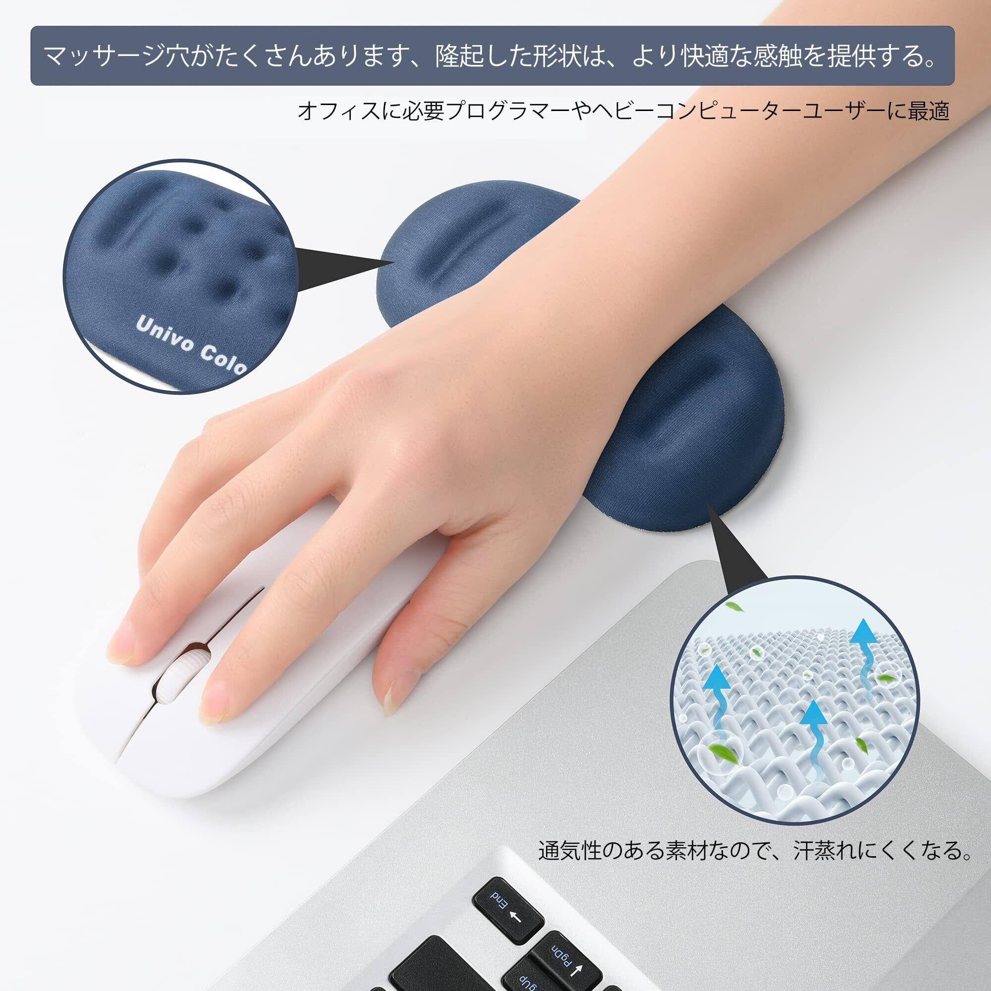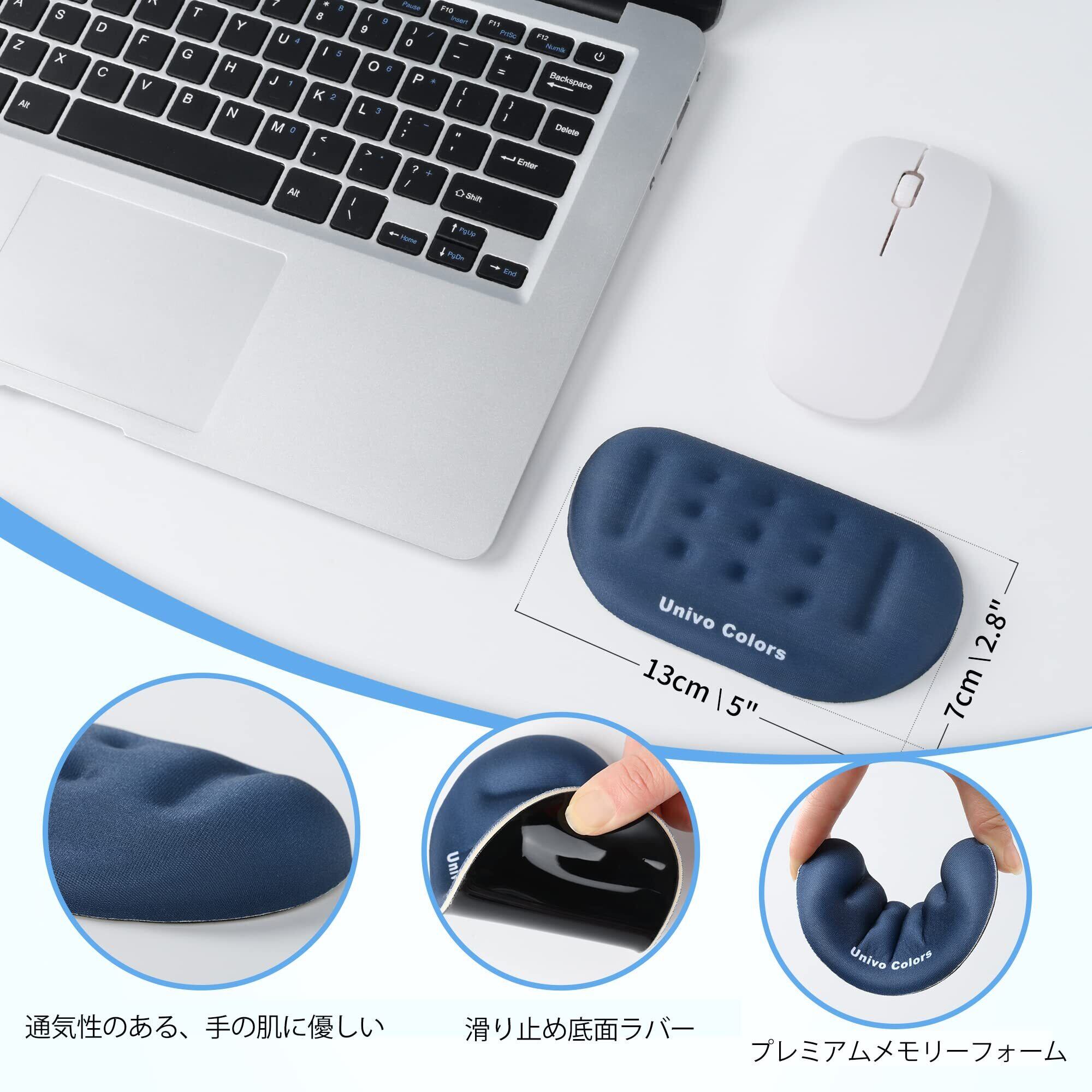 UnivoColors マウスリストレスト 手首置き 疲労低減 通気性 あり 肌に刺激なし 人間工学デザイン 柔らかい素材 ストレス解放 マッサージホール付き(ネイビー)