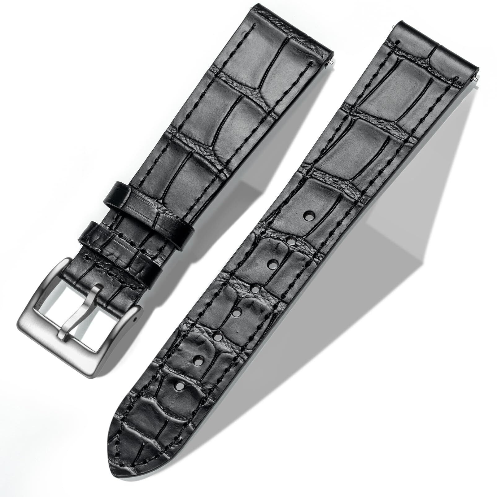 Hemsut 本革腕時計バンド クロコ ワニ革 クロコ型押し腕時計ベルト クイックリリース スマートウォッチバンド 18 9 mm ブラック·ブルー·ブラウン·グレー·グリーン