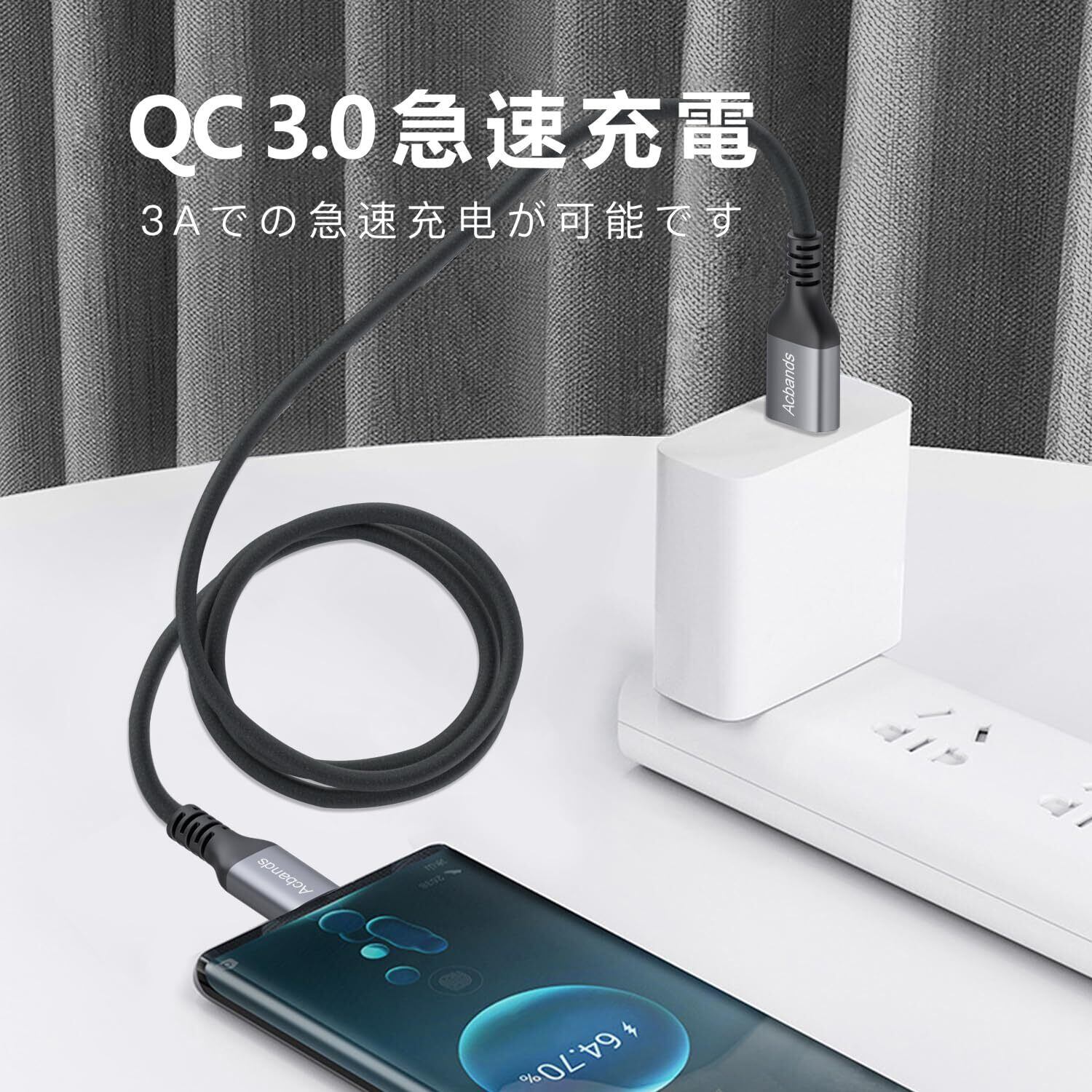 【QC3.0高速充電】USB-C データケーブルは、10V/3A (Quick Charge 3.0) の急速充電を実現できます。 Type C データケーブルは抵抗の低い銅芯線を使用しており、スマートフォン、タブレット、その他のデバイスをより速くフル充電できます。