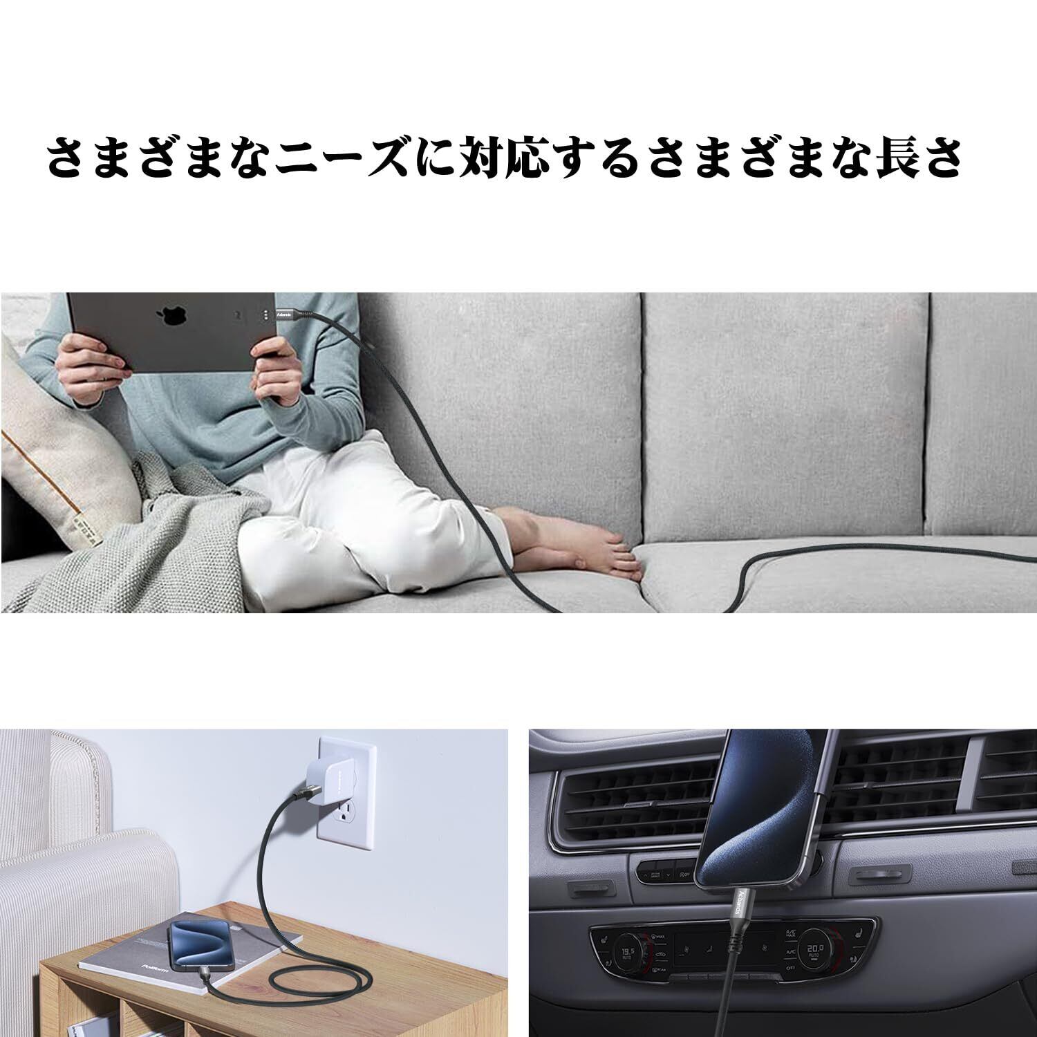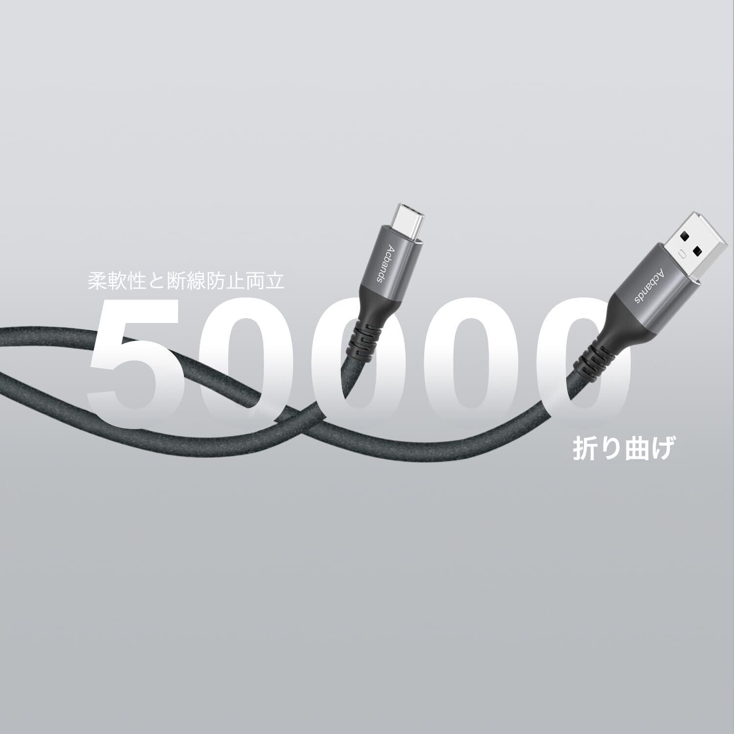 【高い耐久性】このたいぷcケーブルは柔軟性と引張強度が優れ、より柔らかく、軽く、耐久性が高く、50,000回以上の厳しい曲げテストに合格しています。