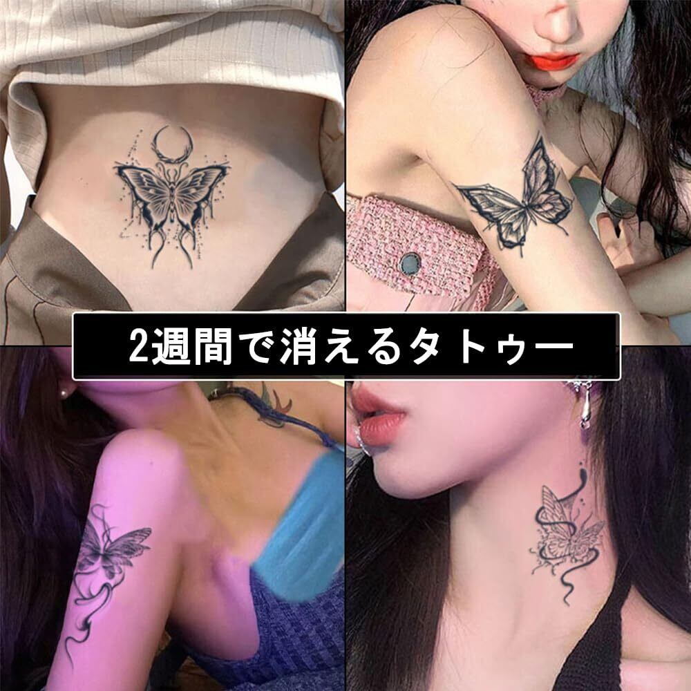 【多用途】蝶のタトゥーシールは、腕、肩、足首、手首、胸部、背中、足、手など、好きな場所に貼ることができます。さまざまなニーズに対応します。