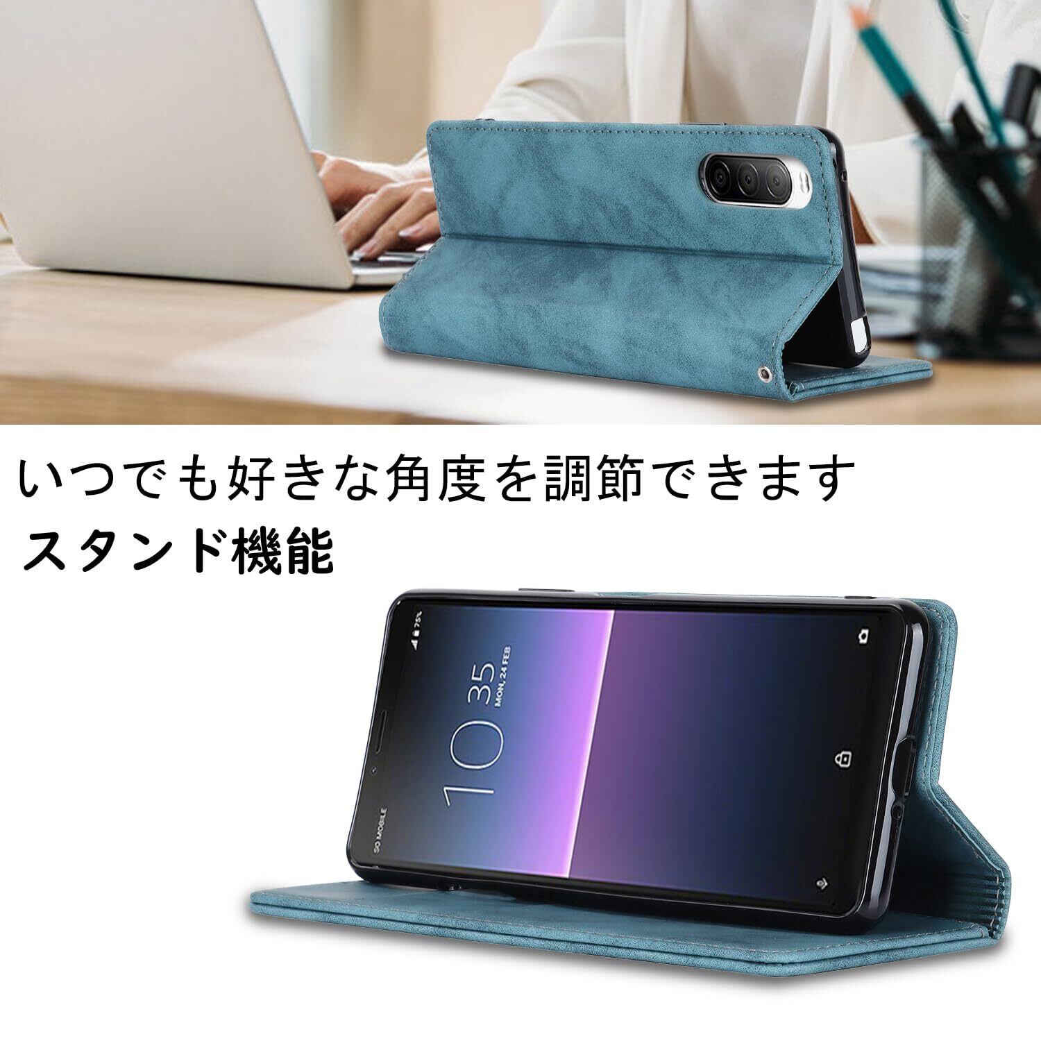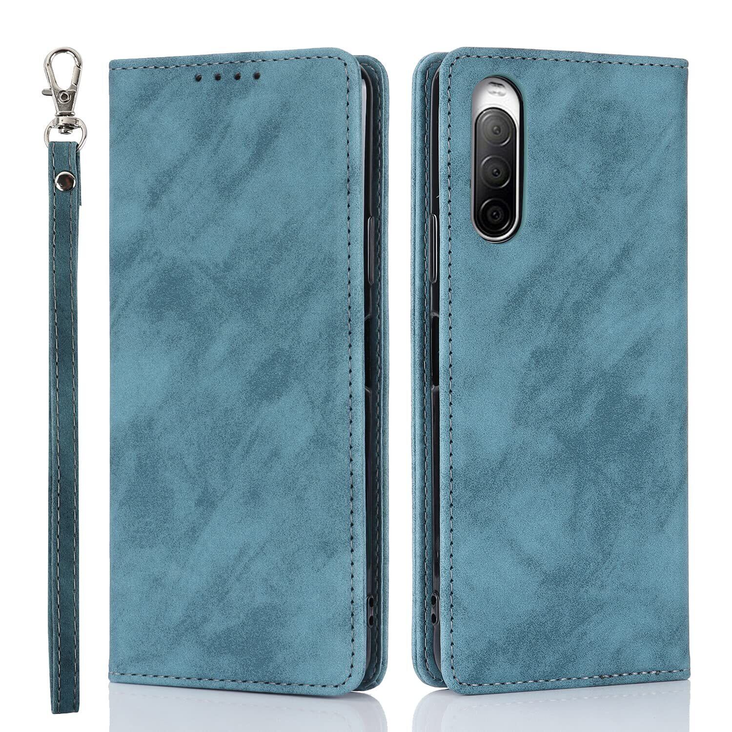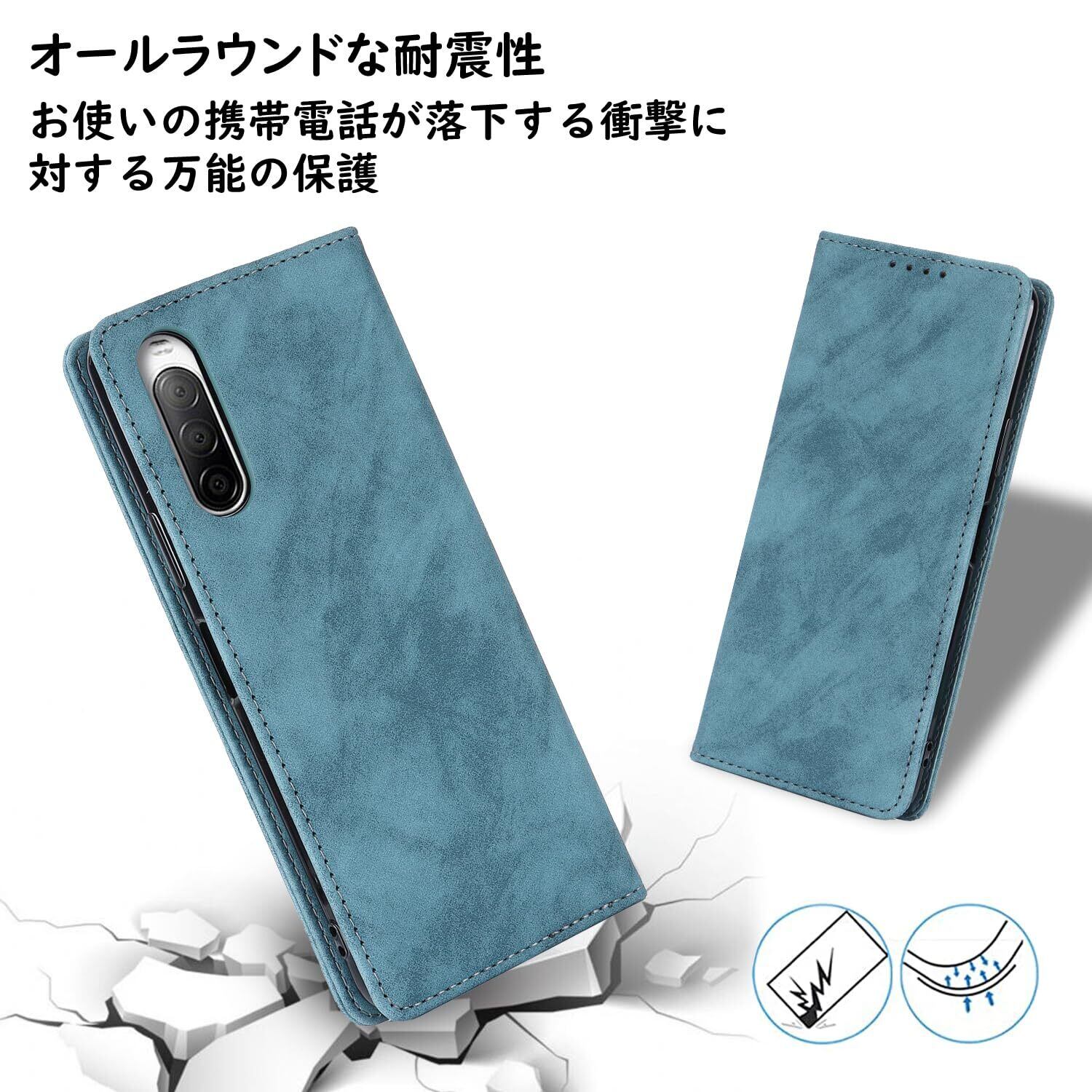 Havaya SO-41A ケース Xperia10II ケース SOV43 ケース 手帳型 耐衝撃 au SONY ソニー エクスペリア10ii カバー 第2世代 docomo モバイル ワイモバイル SoftBank マグネット式 カード収納 レザー スエードの質感-ブルー