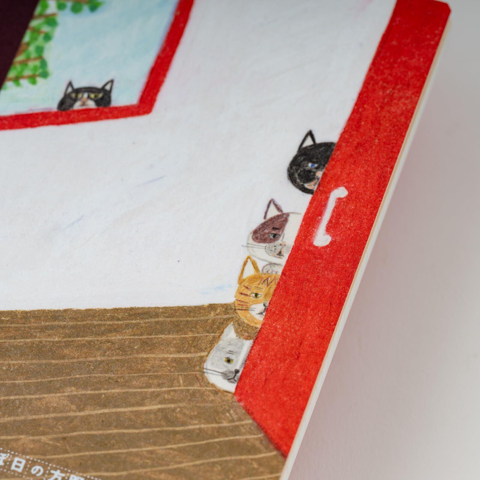 お客さんの気配を察し、じろじろと見つめる猫たちが描かれています。