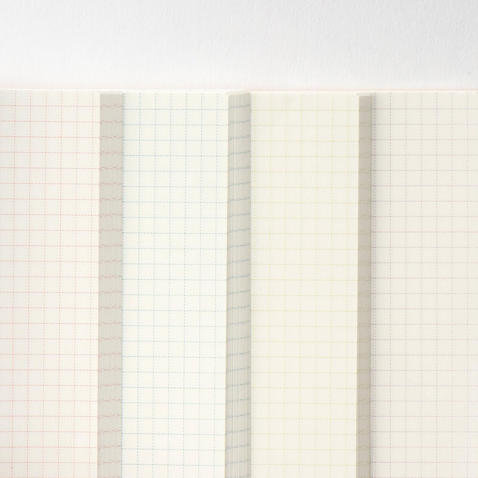 A6サイズで180度パタンと開く、中が4色に分かれた方眼ノートです。