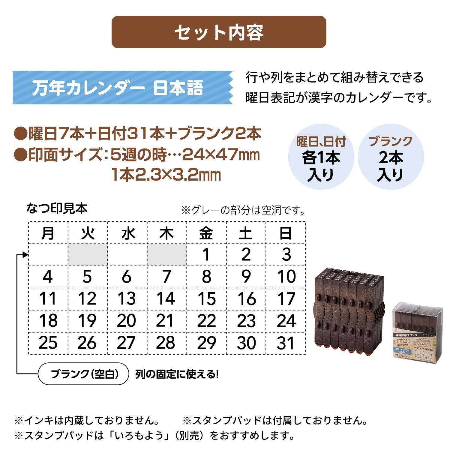 シャチハタ ゴム印 連結数字 スタンプ 万年カレンダー 日本語 GRJ-5ACJ