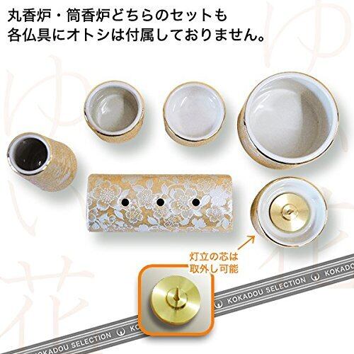 陶器製 モダン仏具5点セット『ゆい花』 (丸香炉) 藤 (j1271-1-3)