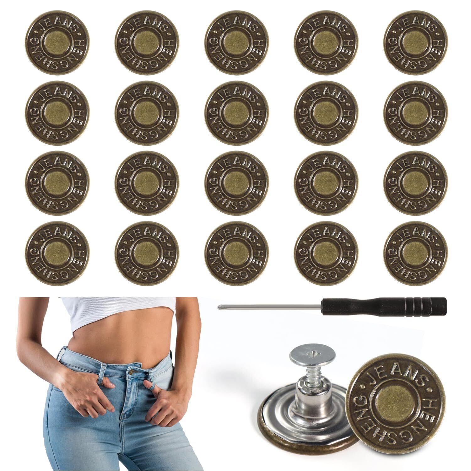 RichLuck ジーンズボタン 金属ボタン 20mm 20個セット ネジ式 ジーンズ用ボタン 簡単取付け ボタン 延長と縮める可能 を数秒で1インチ増減