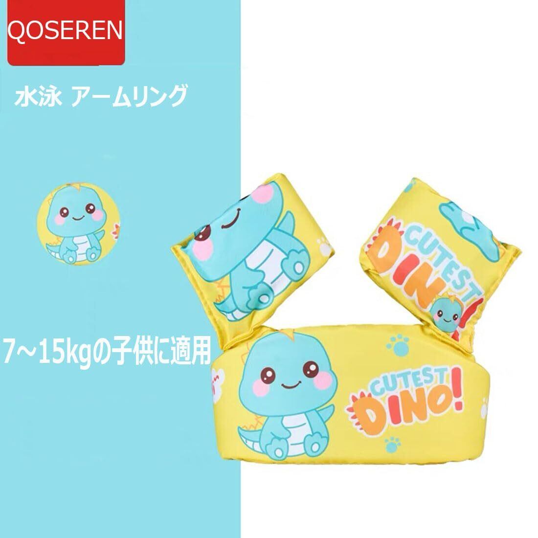 QOSEREN 浮輪 アームリング 子供用 浮き輪 水泳 アーム リング 付き 浮き具 幼児 プール 腕 浮き輪 水泳練習 水遊び 便利 軽量 2~5歳 10~25kg 黄色い