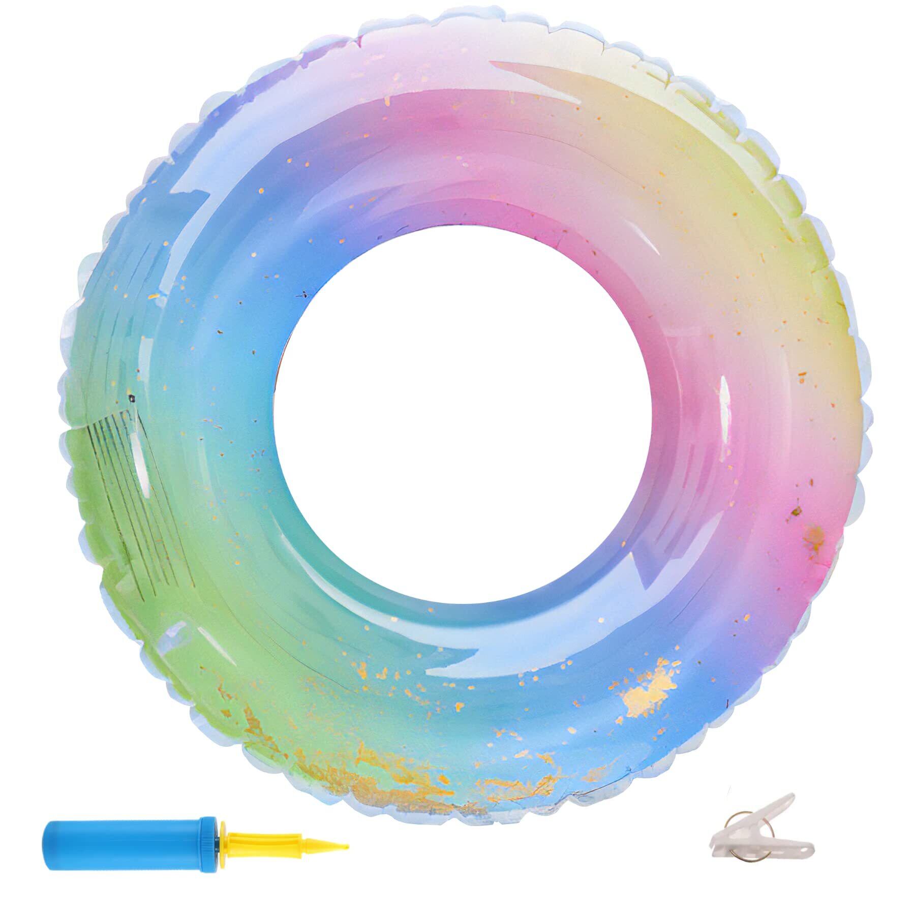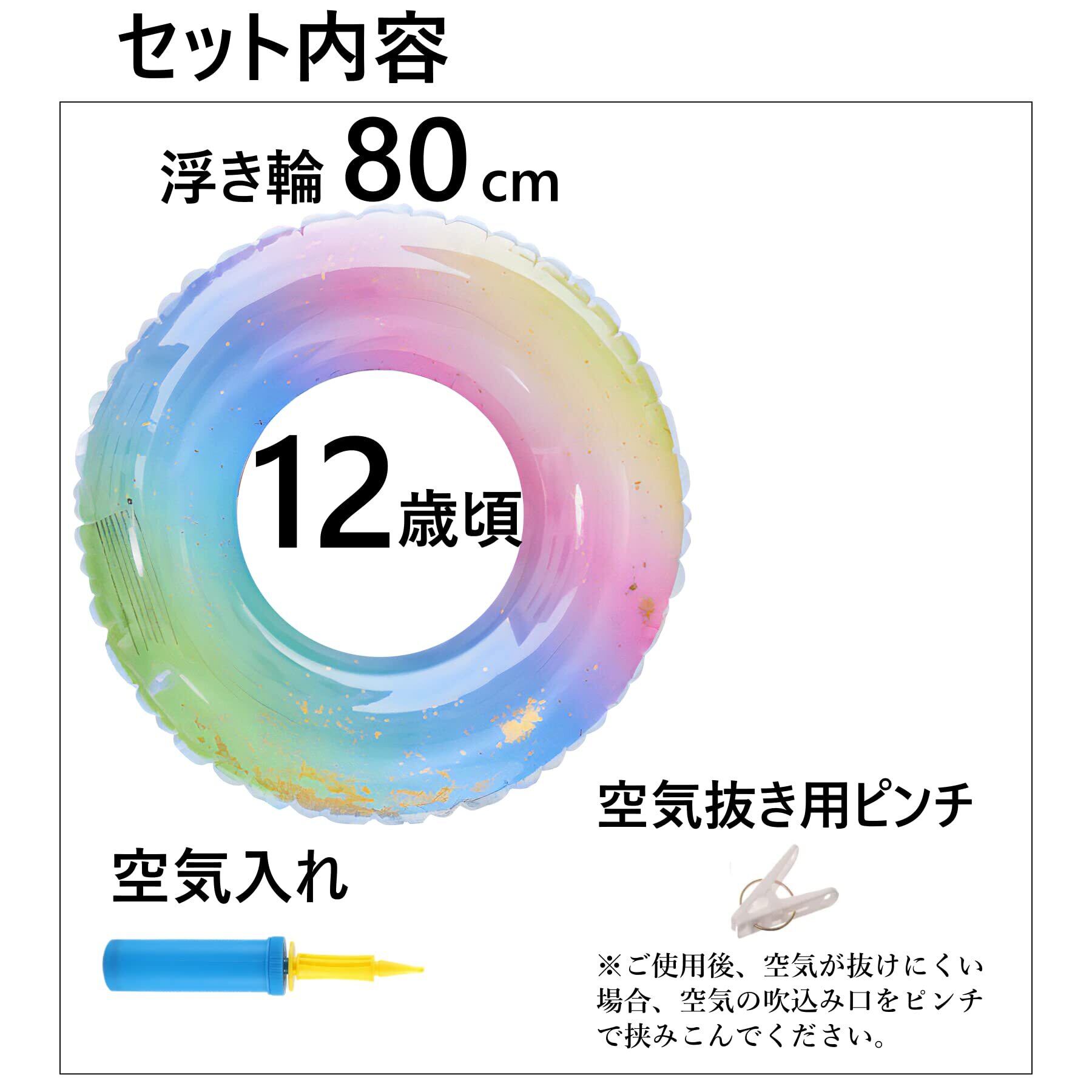 REGANOIR 浮き輪 子供用 大人用 【2個セット】 【単品】 空気入れ付き かわいい ラメ入り フロート キラキラ レインボー 男の子 女の子 兼用 100cm 90cm 80cm 70cm 60cm