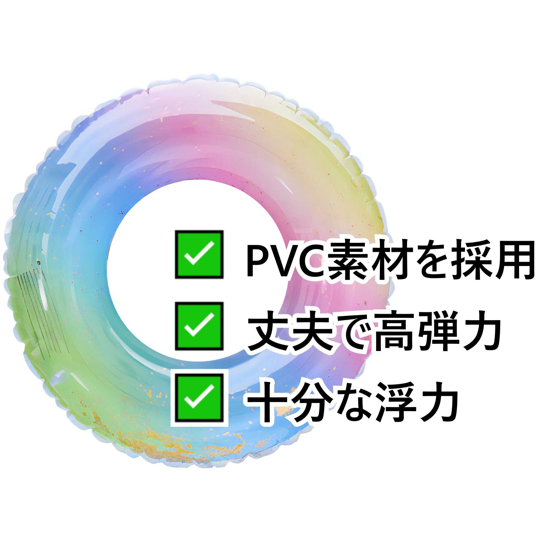 【注意事項】 ・本製品は工場出荷前に空気を入れて24時間おくテストに合格したものだけを販売しておりますが、到着後、お客さまご自身でも空気を入れて一晩置き、空気が抜けていないかご確認ください。 ・本製品は救命具として製造されたものではありません。 ・高温になる場所、車内ダッシュボード等での保管は避けてください。 ・空気抜き用ピンチの色、形状は随時、改善、変更していきますので、画像と異なる場合がございます。 ・サイズは商品の直径ではありません。 ・耐久性の高い高品質のPVC生地を採用しておりますが、素材の特性上、匂いがやや強く感じられる場合がございます。 数回のご使用や陰干しなどにより、気になる匂いはほとんど感じられなくなります。 ・ご使用のモニター、部屋の照明などにより実物の商品と色味が異なる場合がございます。