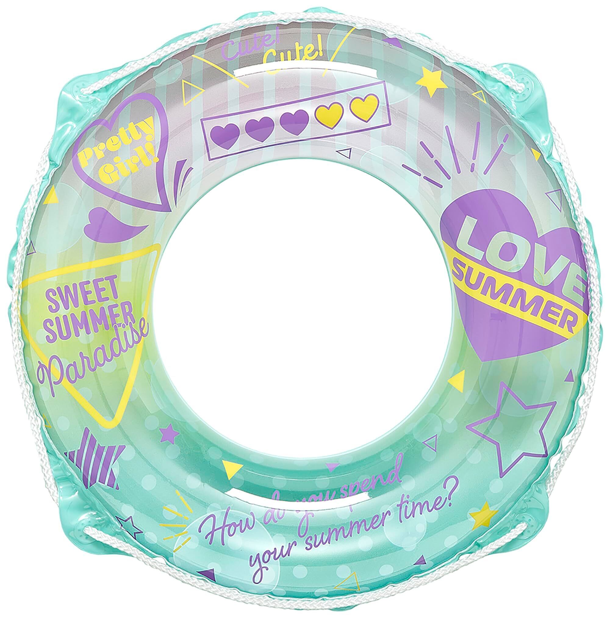 対象年齢4歳~8歳くらいのお子様に最適!。膨らんだ状態のウキワの内周は約85~90cmです。ロープ付き。