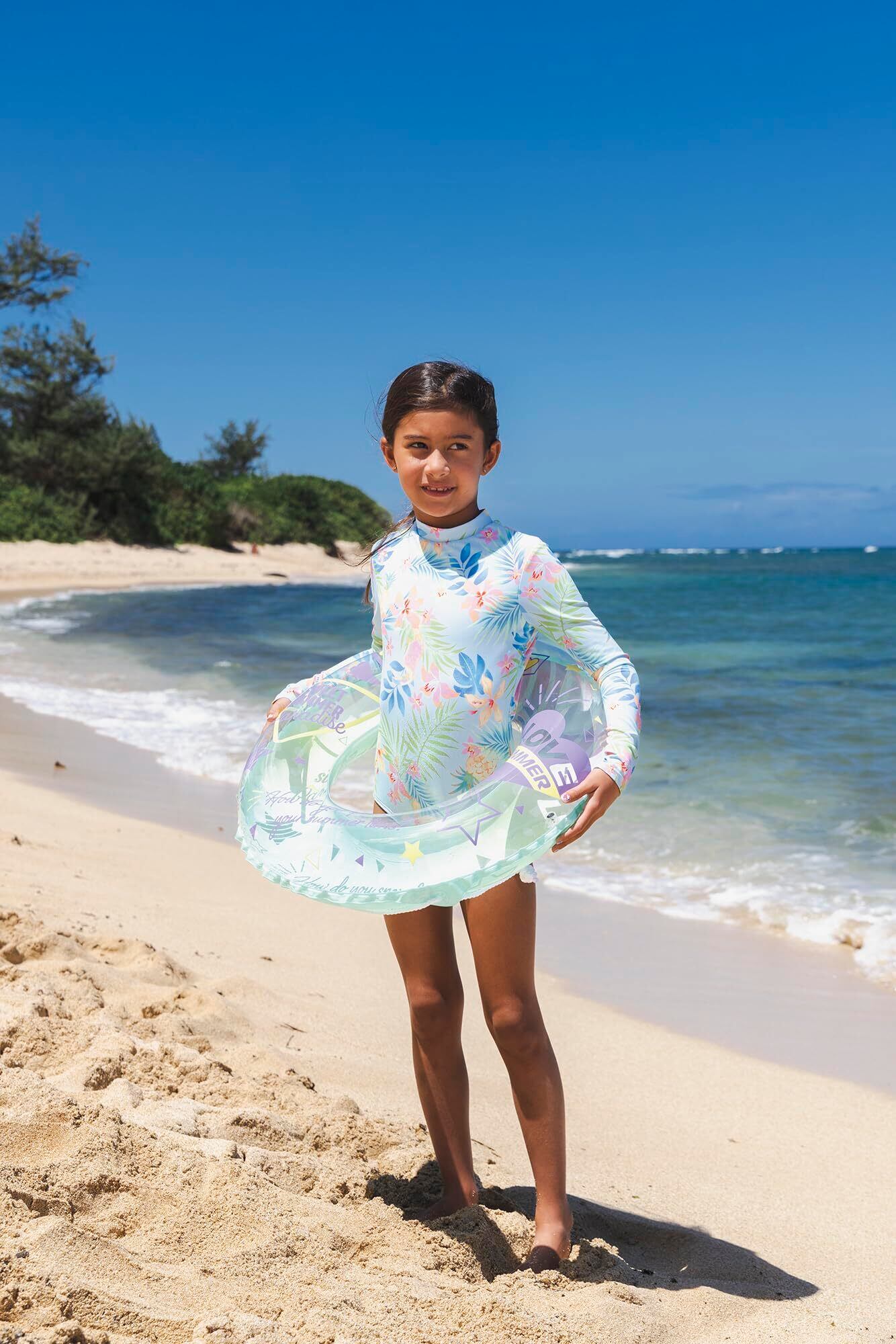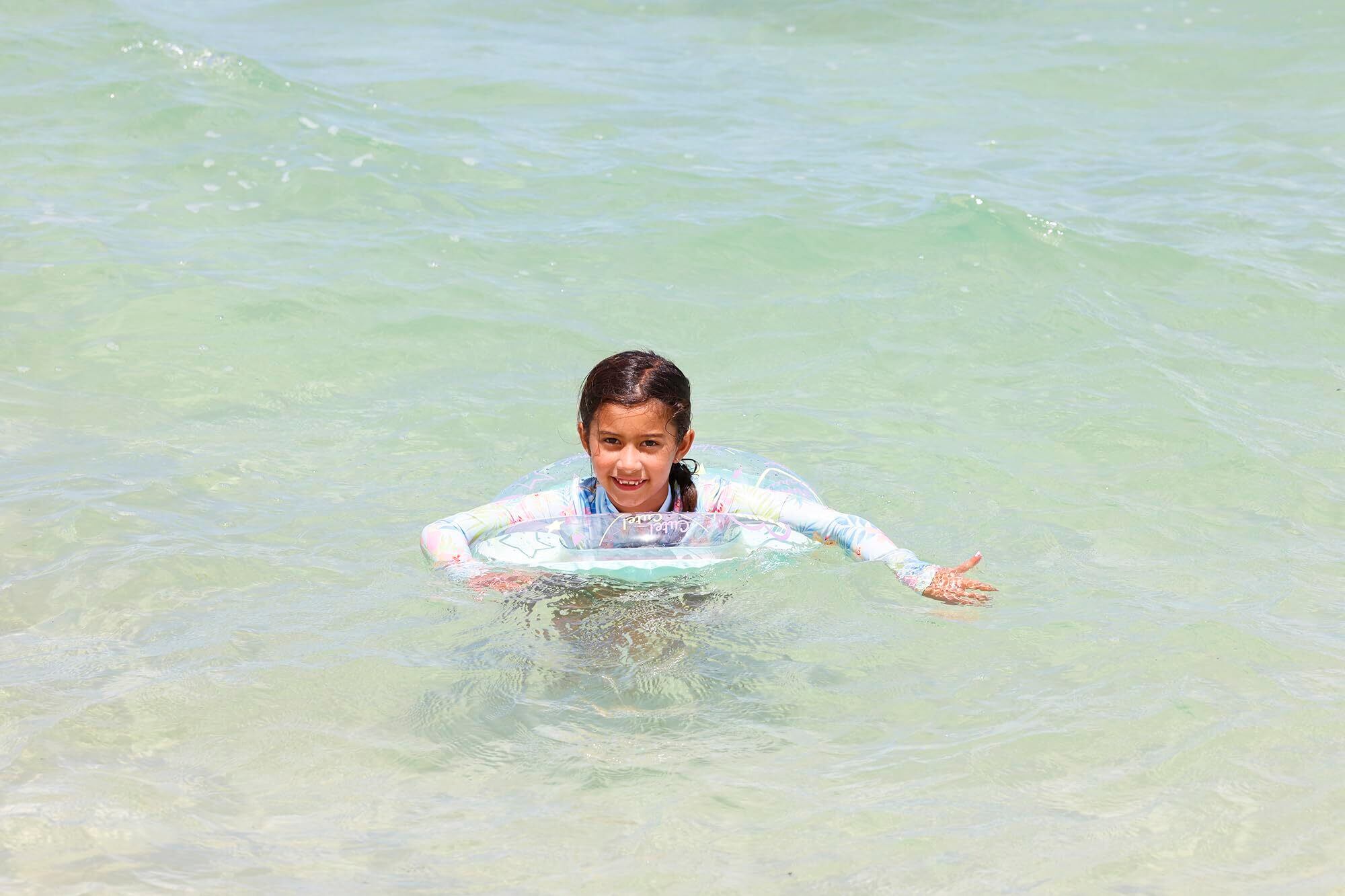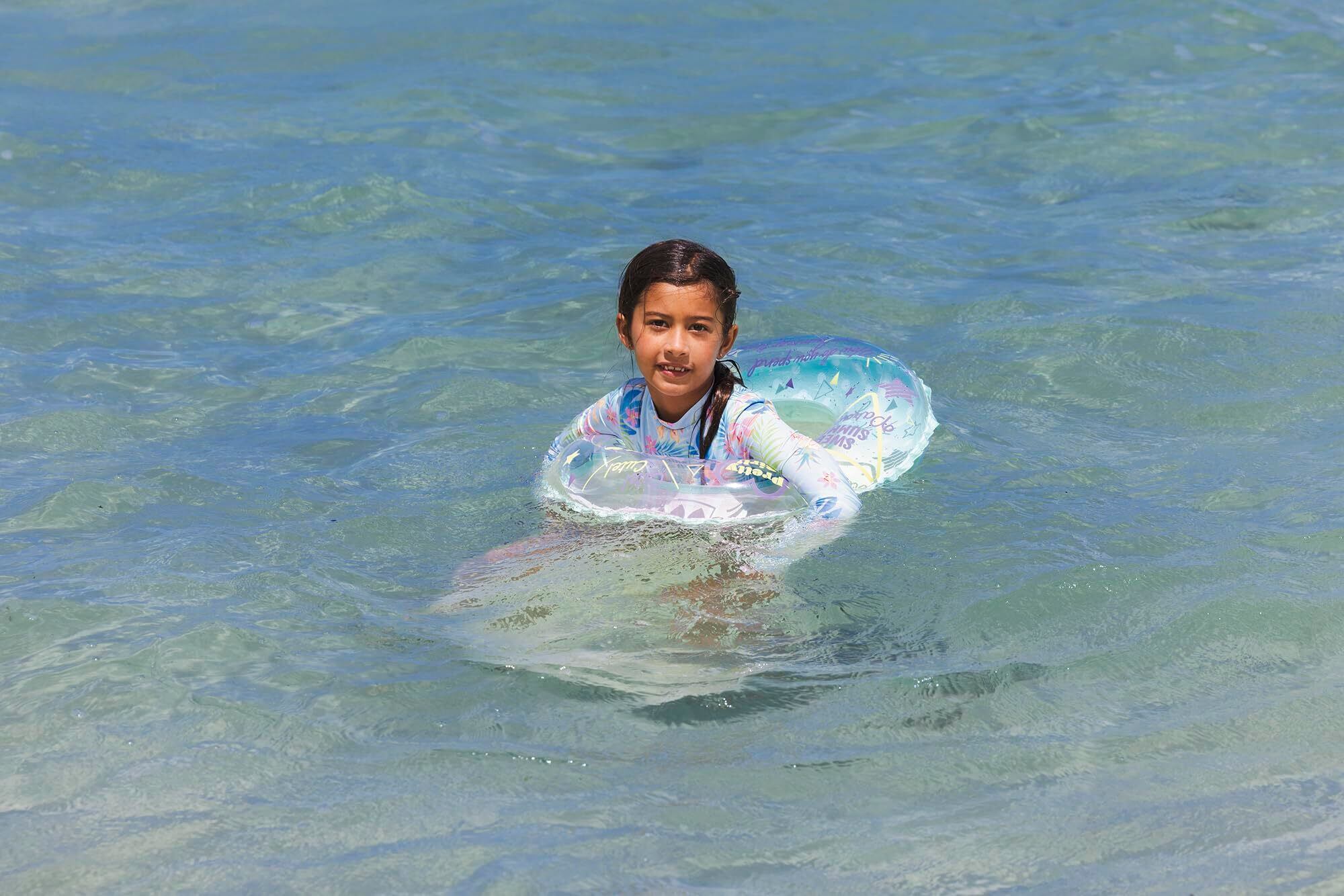 対象年齢4歳~8歳くらいのお子様に最適!。膨らんだ状態のウキワの内周は約85~90cmです。