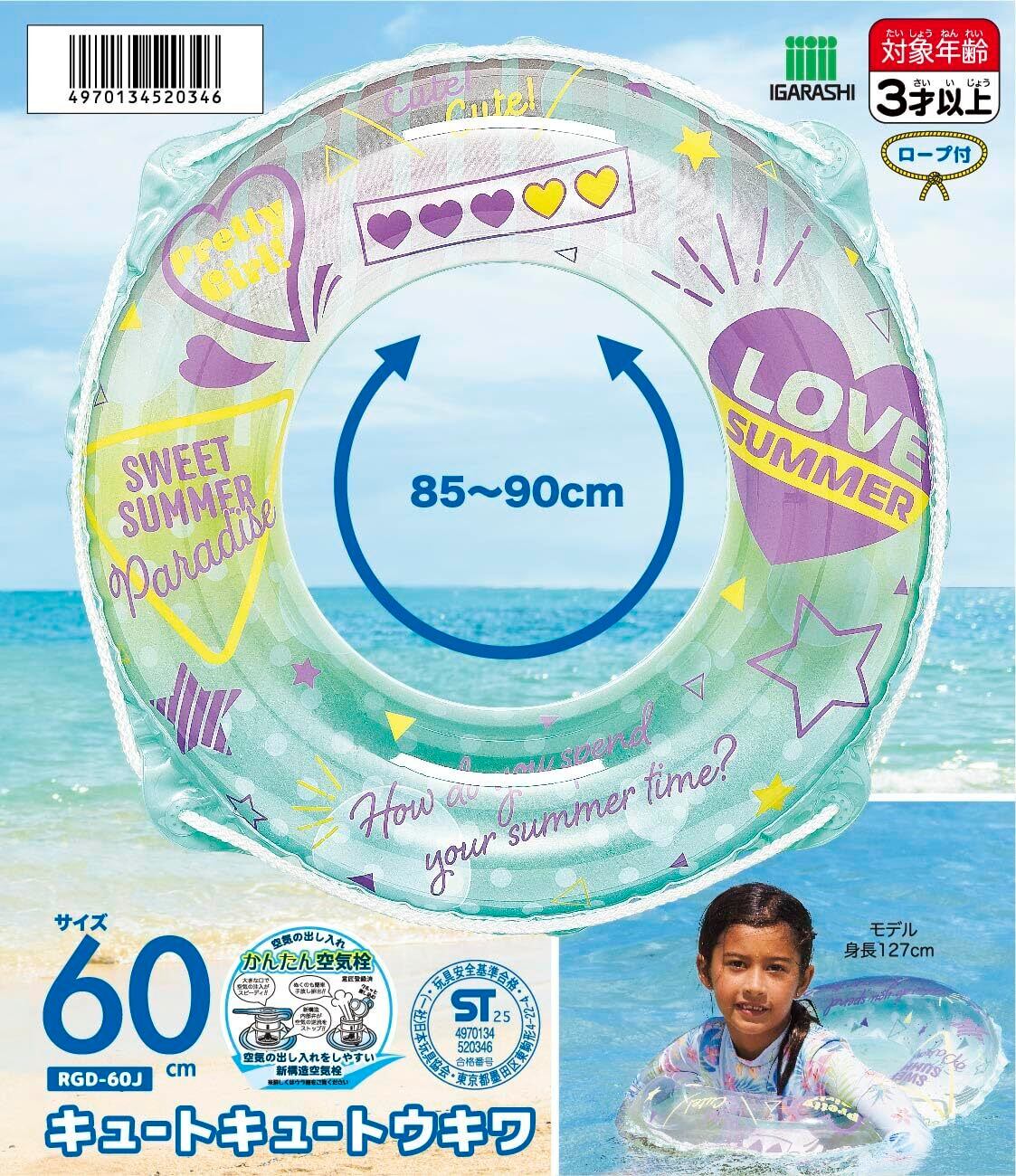 イガラシ 60cm浮き輪 キュートキュートウキワ ロープ付き RGD-60J