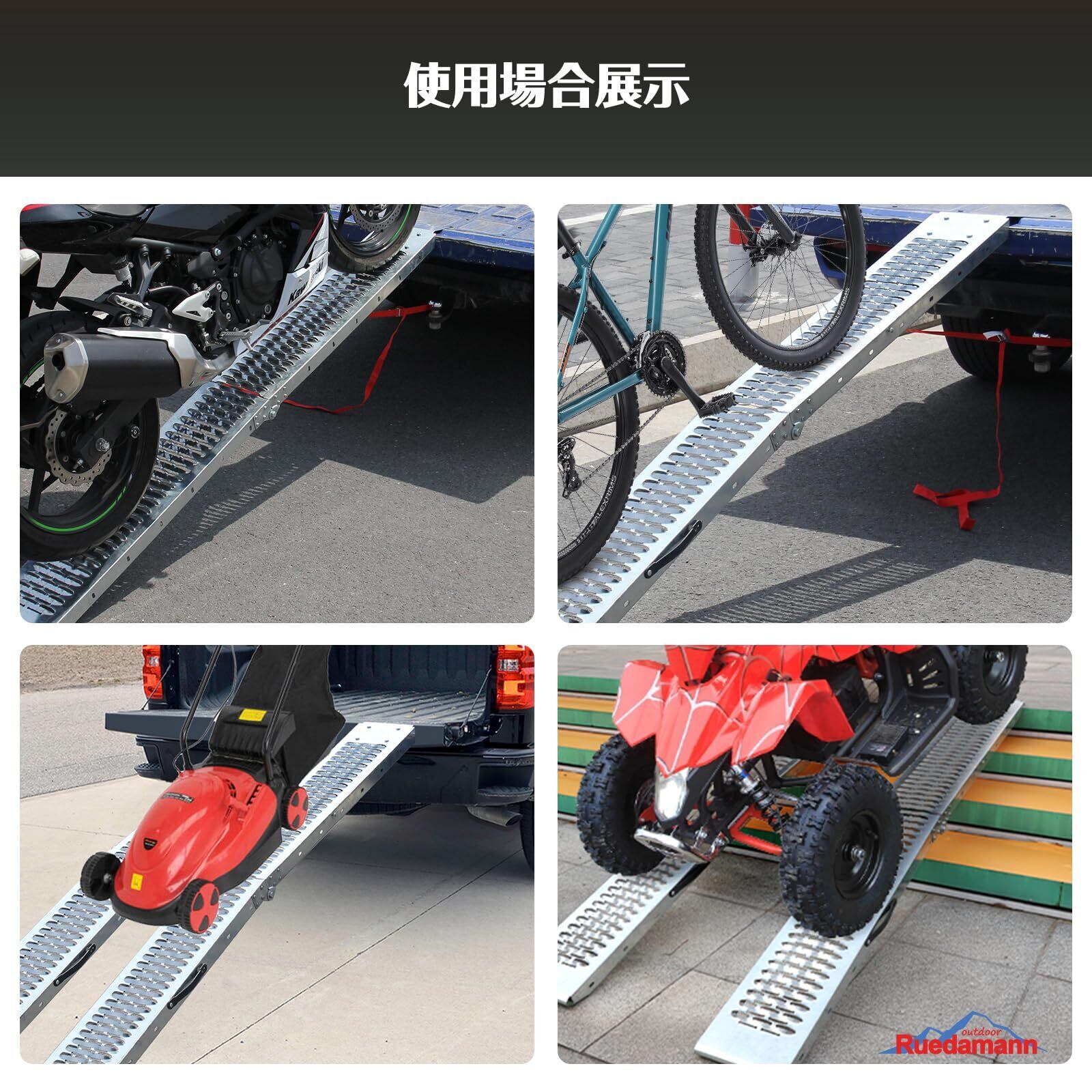 【多用途】本製品はバイクや農機具等をトレーラー、トラック、積載車、納屋、ガレージへ積み込む際に使いやすい。設置簡単で、自転車、バイクに適用だけでなく、ATV四輪バギー、耕運機、除雪機、薪割り機などの農機にも適用、使用中の安定性を確保できて、作業負担を減少できます。