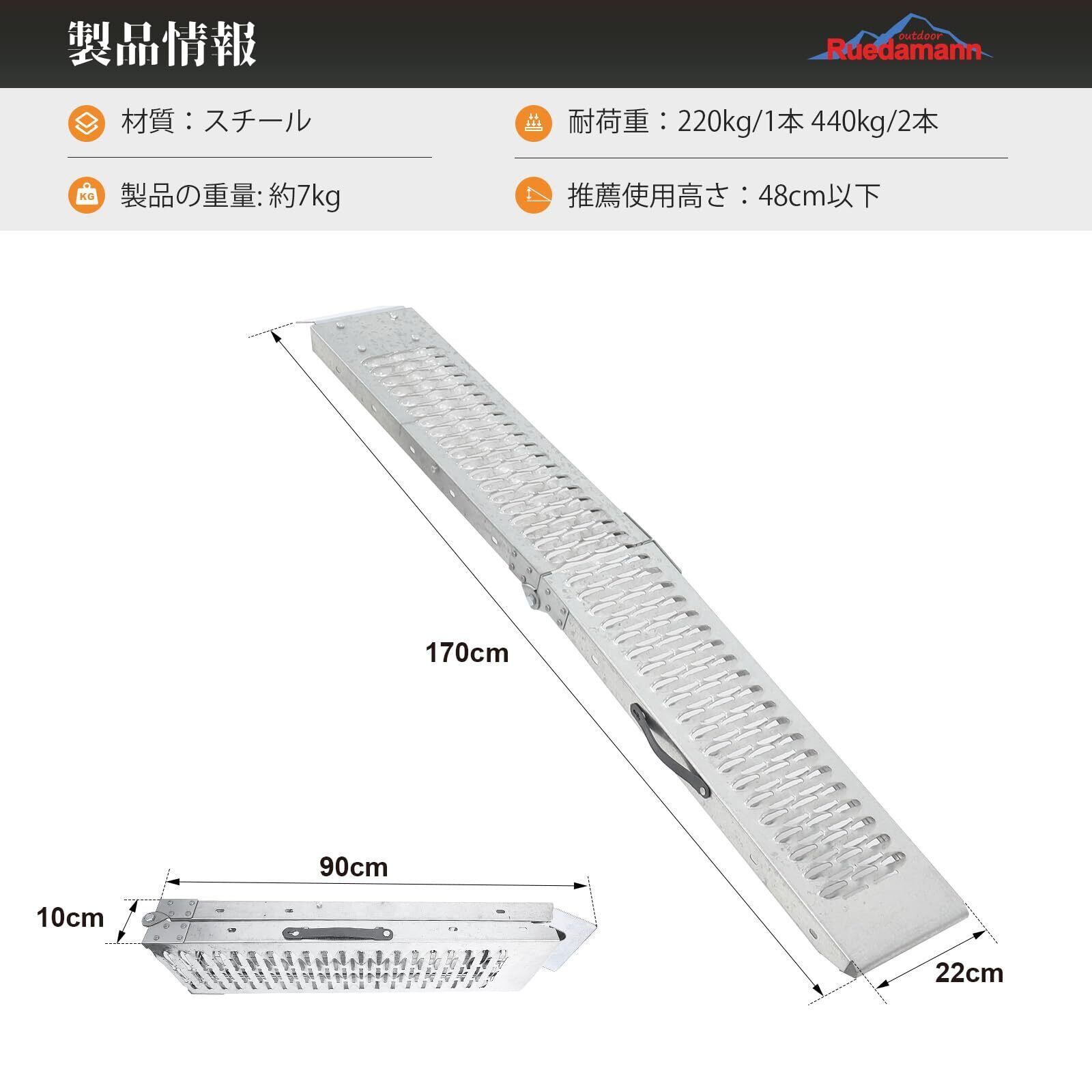 Ruedamann バイク スロープ 長さ170*22cm 耐荷重220kg 折り畳み式 スチール製ラダーレール 取っ手と手袋付き 自転車 バイク 芝刈り機 ATV四輪バギー用 トレーラーへ積み込む 1本
